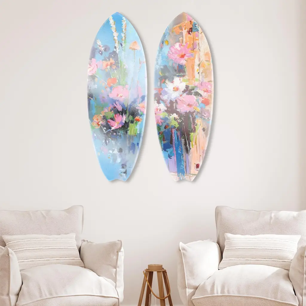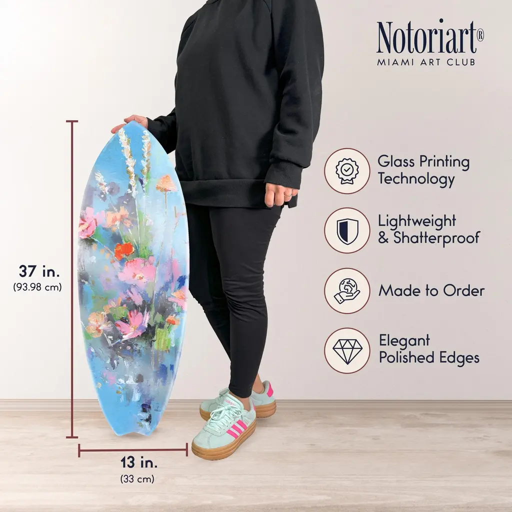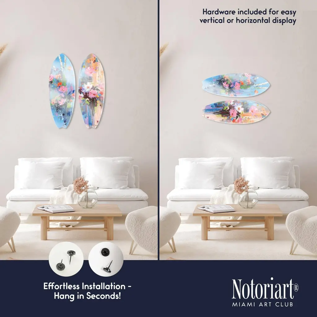 Elevate your home decor with NOTORIART's bold and exclusive Acrylic Glass Skimboard Wall Art. Handcrafted in Miami and made-to-order, this decorative skimboard is more than just coastal decor—it's a statement piece designed to reflect your unique style. Made from high-quality die-cut acrylic glass, it boasts a vibrant, high-gloss finish that brings depth, movement, and life to any space. Whether you're looking to capture the essence of coastal living or seeking a modern art piece to enhance your room, this skimboard offers versatile display options, hanging both horizontally and vertically. Featuring just 2 small holes, it comes with 4 durable aluminum thumbtacks (2 black, 2 silver) for effortless hanging—no complicated tools required. Bring the essence of Miami's artistic flair into your home with a decor item that blends sophistication, authenticity, and individuality.Features: Interior Designers Note: Crafted from die-cut acrylic glass, this decorative skimboard brings bold, vibrant energy to any space. Its hand-polished, glass-like finish creates depth and movement, making it a standout piece in modern decor.Simple, Sleek Hanging Solution: With just 2 small holes and 4 sturdy aluminum thumbtacks provided (2 black, 2 silver), hanging this art is effortless. Push the thumbtacks into the wall—no tools or measuring needed.Handcrafted Excellence: Each piece is meticulously made to order in Miami, reflecting the unique style and quality of NOTORIART's designs. Our skilled artisans ensure attention to detail, producing a luxurious, standout decor item.Premium Materials & Secure Packaging: Constructed from high-quality die-cut acrylic glass with a vibrant, high-gloss finish, this skimboard arrives securely packaged to ensure it reaches you in pristine condition. Exclusive Statement Piece: Inspired by Miami's vibrant art scene, this decorative skimboard merges modern design with coastal influences. Ideal for any room, it brings a touch of refined elegance and individuality to your home or office.Wipe clean with a soft, dry microfiber cloth. Avoid using water or cleaning sprays to maintain the high-gloss finish. Not suitable for outdoor use.