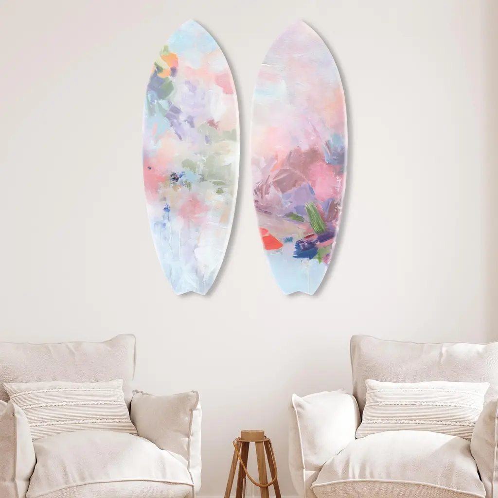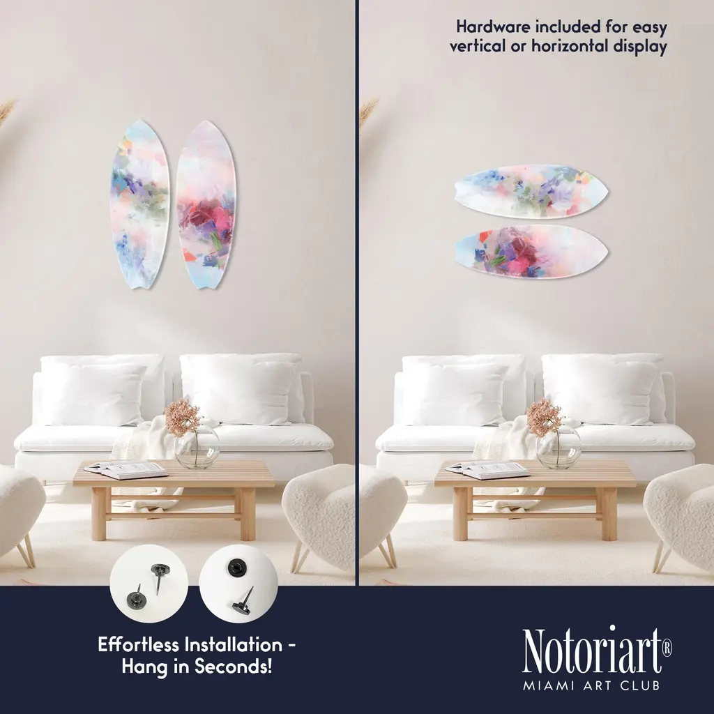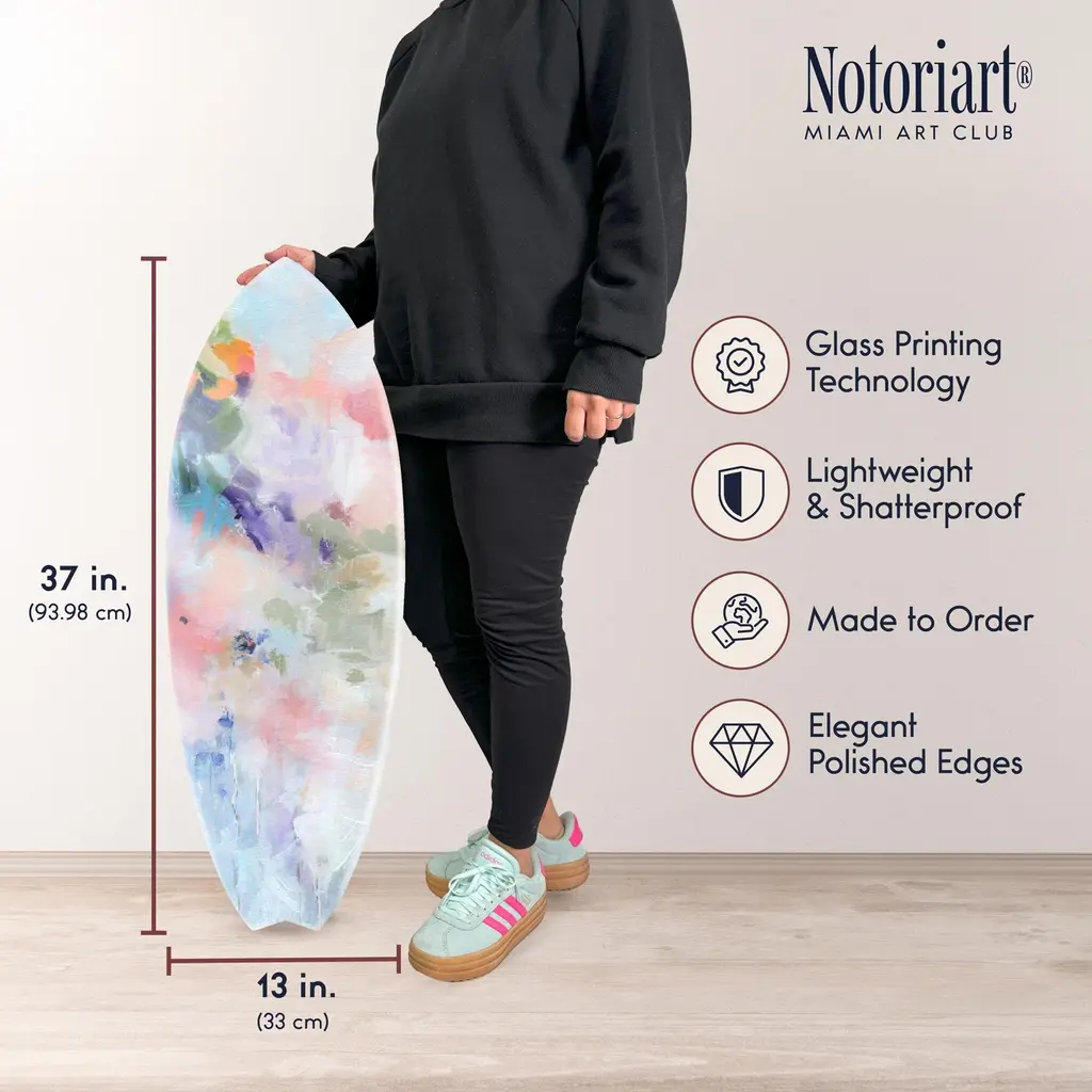 Elevate your home decor with NOTORIART's bold and exclusive Acrylic Glass Skimboard Wall Art. Handcrafted in Miami and made-to-order, this decorative skimboard is more than just coastal decor—it's a statement piece designed to reflect your unique style. Made from high-quality die-cut acrylic glass, it boasts a vibrant, high-gloss finish that brings depth, movement, and life to any space. Whether you're looking to capture the essence of coastal living or seeking a modern art piece to enhance your room, this skimboard offers versatile display options, hanging both horizontally and vertically. Featuring just 2 small holes, it comes with 4 durable aluminum thumbtacks (2 black, 2 silver) for effortless hanging—no complicated tools required. Bring the essence of Miami's artistic flair into your home with a decor item that blends sophistication, authenticity, and individuality.Features: Interior Designers Note: Crafted from die-cut acrylic glass, this decorative skimboard brings bold, vibrant energy to any space. Its hand-polished, glass-like finish creates depth and movement, making it a standout piece in modern decor.Simple, Sleek Hanging Solution: With just 2 small holes and 4 sturdy aluminum thumbtacks provided (2 black, 2 silver), hanging this art is effortless. Push the thumbtacks into the wall—no tools or measuring needed.Handcrafted Excellence: Each piece is meticulously made to order in Miami, reflecting the unique style and quality of NOTORIART's designs. Our skilled artisans ensure attention to detail, producing a luxurious, standout decor item.Premium Materials & Secure Packaging: Constructed from high-quality die-cut acrylic glass with a vibrant, high-gloss finish, this skimboard arrives securely packaged to ensure it reaches you in pristine condition. Exclusive Statement Piece: Inspired by Miami's vibrant art scene, this decorative skimboard merges modern design with coastal influences. Ideal for any room, it brings a touch of refined elegance and individuality to your home or office.Wipe clean with a soft, dry microfiber cloth. Avoid using water or cleaning sprays to maintain the high-gloss finish. Not suitable for outdoor use.