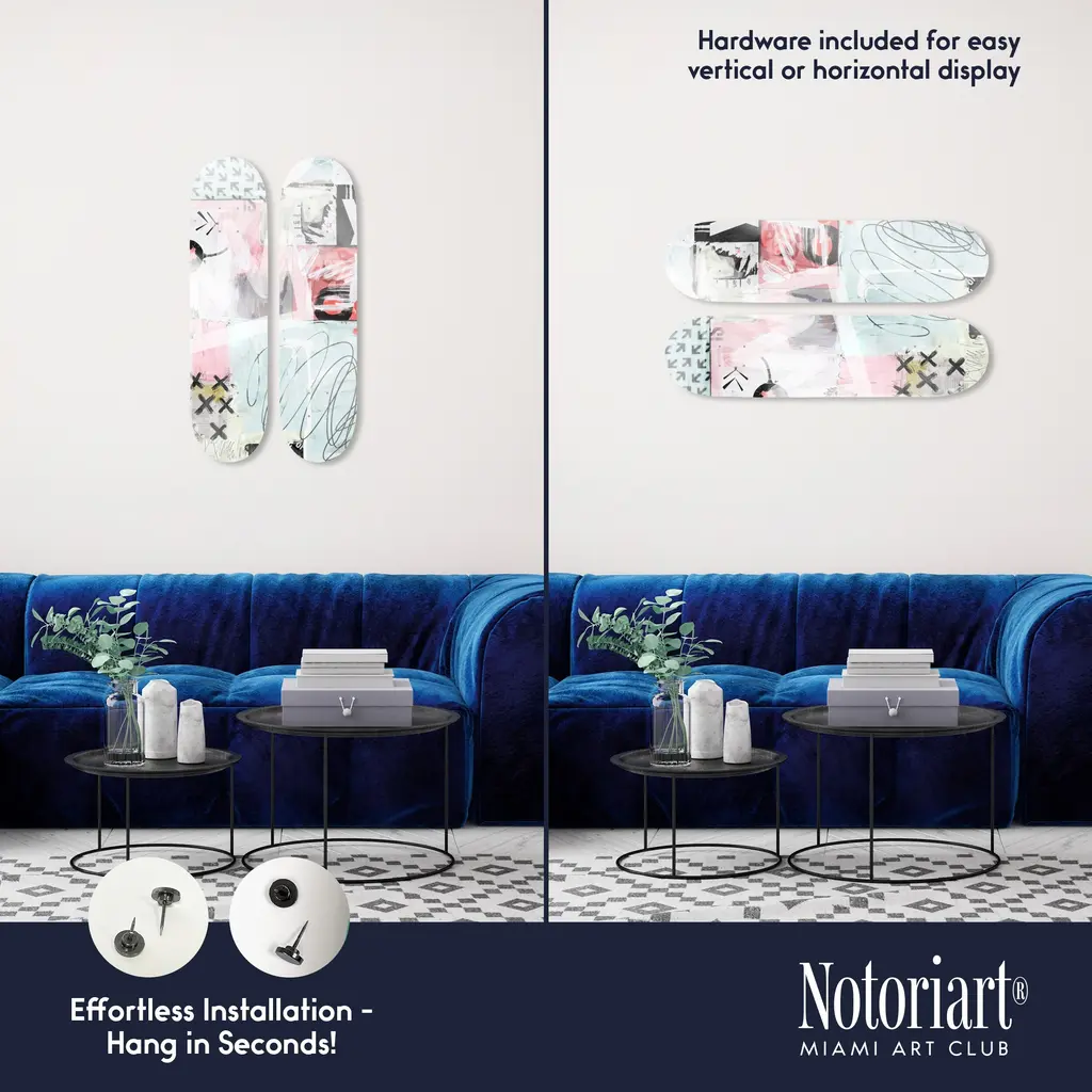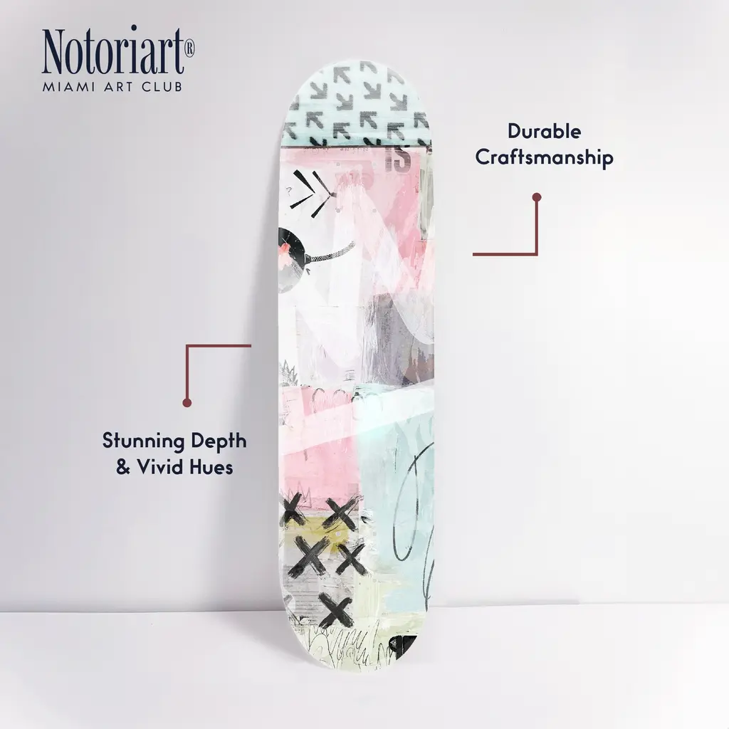 Elevate your decor with NOTORIART's Acrylic Glass Skateboard Wall Art. This 8" x 32" collectible masterpiece blends vibrant pop art with the essence of modern skate culture, crafted from precision-cut acrylic glass and hand-polished for a stunning finish. Featuring just 2 small holes, it comes with 4 durable aluminum thumbtacks (2 black, 2 silver) for effortless hanging—no complicated tools required. Ideal for skateboard enthusiasts and pop art collectors, this exclusive design is handmade to order in Miami, making it a unique statement piece for any urban space.Features: Interior Designer's Note: This collectible skateboard-shaped wall decor is crafted from precision-cut acrylic glass, featuring vibrant pop art designs that bring a playful energy to any space.Simple, Sleek Hanging Solution: With just 2 small holes and 4 sturdy aluminum thumbtacks provided (2 black, 2 silver), hanging this art is effortless. Push the thumbtacks into the wall—no tools or measuring needed.Pop Art-Inspired Style: Hand-polished to a glossy finish, this artwork captures the spirit of modern skate culture and urban art, making it a striking focal point for any room.Premium Materials & Secure Packaging: Made with high-quality acrylic glass, each piece is securely packaged to ensure it arrives in pristine, collectible condition. Size: 8" x 32"Exclusive NOTORIART Collectible: Handcrafted in Miami, this limited-edition skateboard art is perfect for skate enthusiasts and pop art lovers, offering a unique way to express individuality.To maintain its glossy finish, clean with a soft, dry microfiber cloth. Avoid using water or sprays. Suitable for indoor use only.