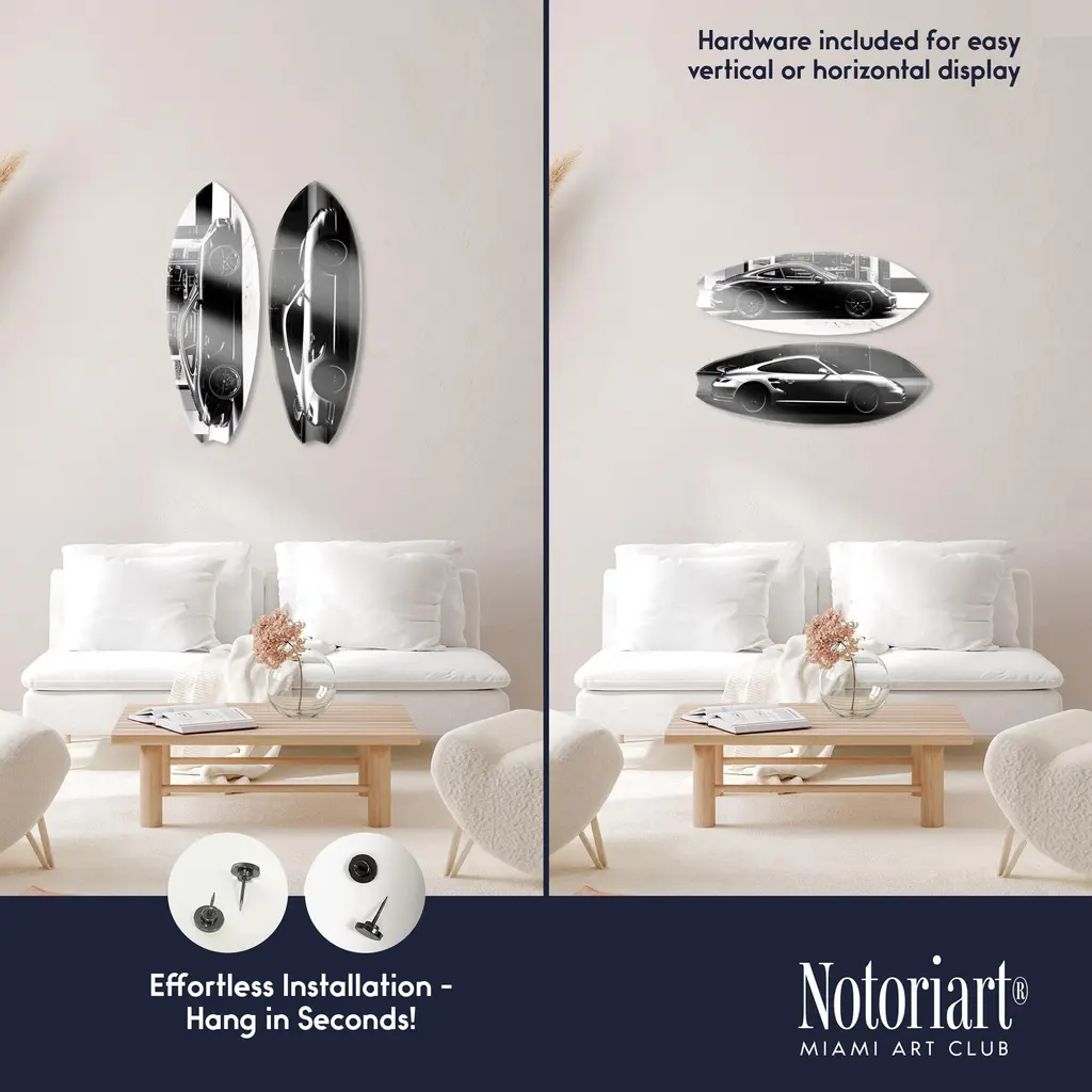Notoriart Modern Mancave Art Coastal Acrylic Wall Art Easy-To-Hang, 2 Panel 13" X 37" - Parking With Class