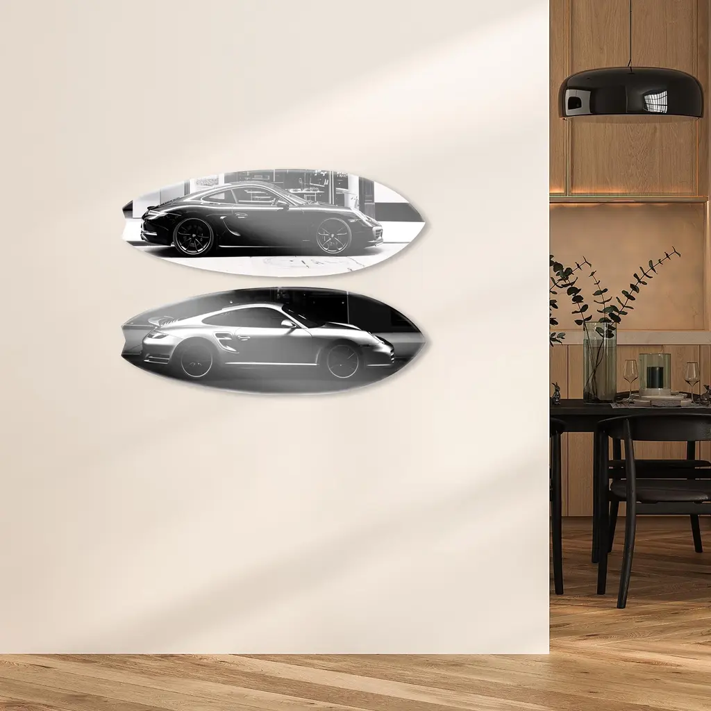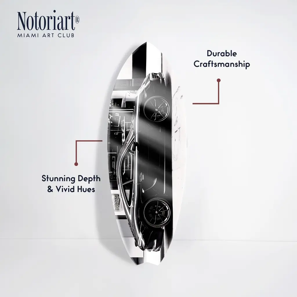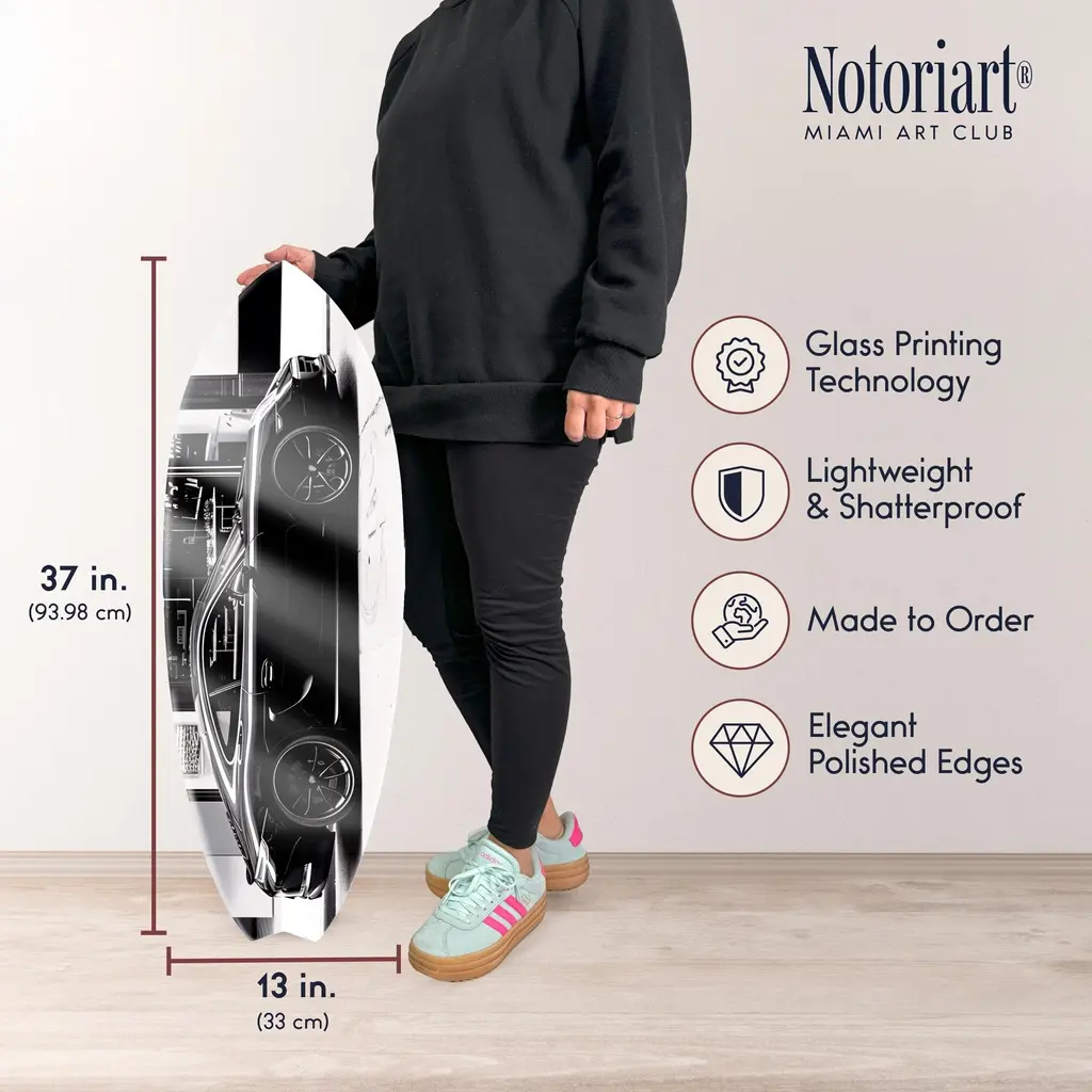 Elevate your home decor with NOTORIART's bold and exclusive Acrylic Glass Skimboard Wall Art. Handcrafted in Miami and made-to-order, this decorative skimboard is more than just coastal decor—it's a statement piece designed to reflect your unique style. Made from high-quality die-cut acrylic glass, it boasts a vibrant, high-gloss finish that brings depth, movement, and life to any space. Whether you're looking to capture the essence of coastal living or seeking a modern art piece to enhance your room, this skimboard offers versatile display options, hanging both horizontally and vertically. Featuring just 2 small holes, it comes with 4 durable aluminum thumbtacks (2 black, 2 silver) for effortless hanging—no complicated tools required. Bring the essence of Miami's artistic flair into your home with a decor item that blends sophistication, authenticity, and individuality.Features: Interior Designers Note: Crafted from die-cut acrylic glass, this decorative skimboard brings bold, vibrant energy to any space. Its hand-polished, glass-like finish creates depth and movement, making it a standout piece in modern decor.Simple, Sleek Hanging Solution: With just 2 small holes and 4 sturdy aluminum thumbtacks provided (2 black, 2 silver), hanging this art is effortless. Push the thumbtacks into the wall—no tools or measuring needed.Handcrafted Excellence: Each piece is meticulously made to order in Miami, reflecting the unique style and quality of NOTORIART's designs. Our skilled artisans ensure attention to detail, producing a luxurious, standout decor item.Premium Materials & Secure Packaging: Constructed from high-quality die-cut acrylic glass with a vibrant, high-gloss finish, this skimboard arrives securely packaged to ensure it reaches you in pristine condition. Exclusive Statement Piece: Inspired by Miami's vibrant art scene, this decorative skimboard merges modern design with coastal influences. Ideal for any room, it brings a touch of refined elegance and individuality to your home or office.Wipe clean with a soft, dry microfiber cloth. Avoid using water or cleaning sprays to maintain the high-gloss finish. Not suitable for outdoor use.