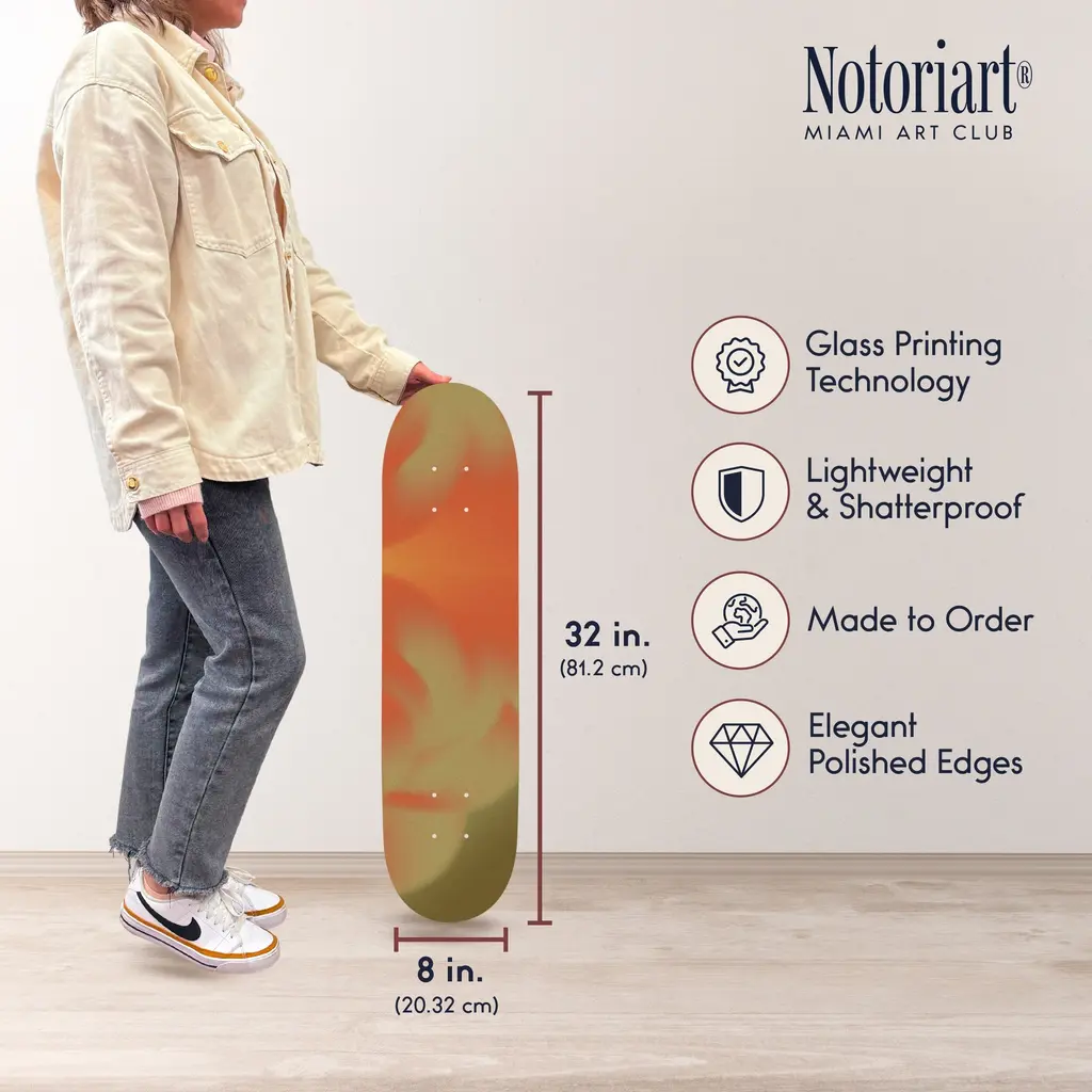 Elevate your decor with NOTORIART's Acrylic Glass Skateboard Wall Art. This 8" x 32" collectible masterpiece blends vibrant pop art with the essence of modern skate culture, crafted from precision-cut acrylic glass and hand-polished for a stunning finish. Featuring just 2 small holes, it comes with 4 durable aluminum thumbtacks (2 black, 2 silver) for effortless hanging—no complicated tools required. Ideal for skateboard enthusiasts and pop art collectors, this exclusive design is handmade to order in Miami, making it a unique statement piece for any urban space.Features: Interior Designer's Note: This collectible skateboard-shaped wall decor is crafted from precision-cut acrylic glass, featuring vibrant pop art designs that bring a playful energy to any space.Simple, Sleek Hanging Solution: With just 2 small holes and 4 sturdy aluminum thumbtacks provided (2 black, 2 silver), hanging this art is effortless. Push the thumbtacks into the wall—no tools or measuring needed.Pop Art-Inspired Style: Hand-polished to a glossy finish, this artwork captures the spirit of modern skate culture and urban art, making it a striking focal point for any room.Premium Materials & Secure Packaging: Made with high-quality acrylic glass, each piece is securely packaged to ensure it arrives in pristine, collectible condition. Size: 8" x 32"Exclusive NOTORIART Collectible: Handcrafted in Miami, this limited-edition skateboard art is perfect for skate enthusiasts and pop art lovers, offering a unique way to express individuality.To maintain its glossy finish, clean with a soft, dry microfiber cloth. Avoid using water or sprays. Suitable for indoor use only.