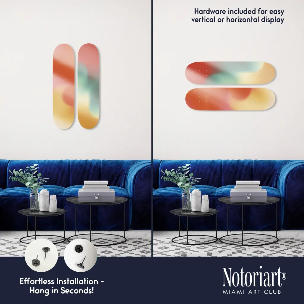 Elevate your decor with NOTORIART's Acrylic Glass Skateboard Wall Art. This 8" x 32" collectible masterpiece blends vibrant pop art with the essence of modern skate culture, crafted from precision-cut acrylic glass and hand-polished for a stunning finish. Featuring just 2 small holes, it comes with 4 durable aluminum thumbtacks (2 black, 2 silver) for effortless hanging—no complicated tools required. Ideal for skateboard enthusiasts and pop art collectors, this exclusive design is handmade to order in Miami, making it a unique statement piece for any urban space.Features: Interior Designer's Note: This collectible skateboard-shaped wall decor is crafted from precision-cut acrylic glass, featuring vibrant pop art designs that bring a playful energy to any space.Simple, Sleek Hanging Solution: With just 2 small holes and 4 sturdy aluminum thumbtacks provided (2 black, 2 silver), hanging this art is effortless. Push the thumbtacks into the wall—no tools or measuring needed.Pop Art-Inspired Style: Hand-polished to a glossy finish, this artwork captures the spirit of modern skate culture and urban art, making it a striking focal point for any room.Premium Materials & Secure Packaging: Made with high-quality acrylic glass, each piece is securely packaged to ensure it arrives in pristine, collectible condition. Size: 8" x 32"Exclusive NOTORIART Collectible: Handcrafted in Miami, this limited-edition skateboard art is perfect for skate enthusiasts and pop art lovers, offering a unique way to express individuality.To maintain its glossy finish, clean with a soft, dry microfiber cloth. Avoid using water or sprays. Suitable for indoor use only.