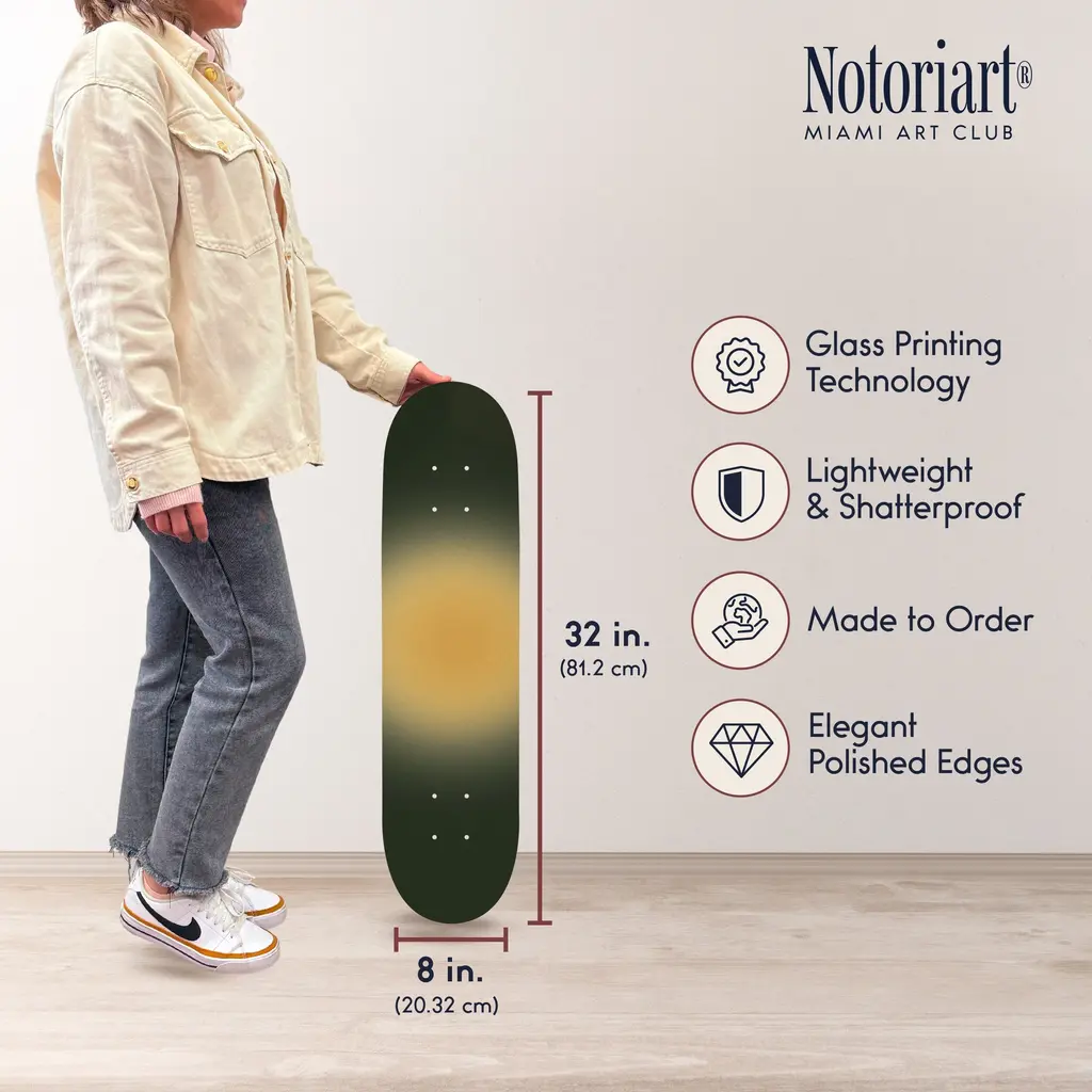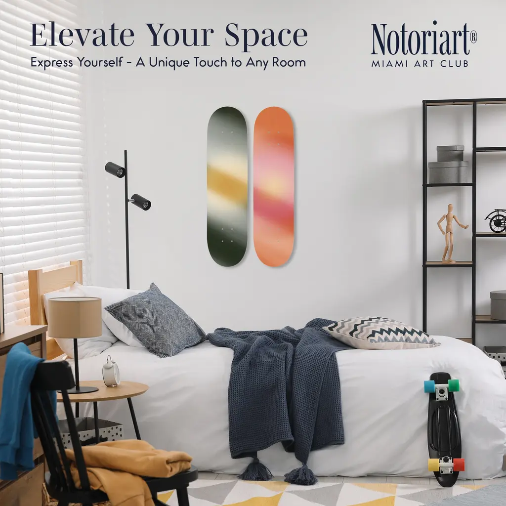Elevate your decor with NOTORIART's Acrylic Glass Skateboard Wall Art. This 8" x 32" collectible masterpiece blends vibrant pop art with the essence of modern skate culture, crafted from precision-cut acrylic glass and hand-polished for a stunning finish. Featuring just 2 small holes, it comes with 4 durable aluminum thumbtacks (2 black, 2 silver) for effortless hanging—no complicated tools required. Ideal for skateboard enthusiasts and pop art collectors, this exclusive design is handmade to order in Miami, making it a unique statement piece for any urban space.Features: Interior Designer's Note: This collectible skateboard-shaped wall decor is crafted from precision-cut acrylic glass, featuring vibrant pop art designs that bring a playful energy to any space.Simple, Sleek Hanging Solution: With just 2 small holes and 4 sturdy aluminum thumbtacks provided (2 black, 2 silver), hanging this art is effortless. Push the thumbtacks into the wall—no tools or measuring needed.Pop Art-Inspired Style: Hand-polished to a glossy finish, this artwork captures the spirit of modern skate culture and urban art, making it a striking focal point for any room.Premium Materials & Secure Packaging: Made with high-quality acrylic glass, each piece is securely packaged to ensure it arrives in pristine, collectible condition. Size: 8" x 32"Exclusive NOTORIART Collectible: Handcrafted in Miami, this limited-edition skateboard art is perfect for skate enthusiasts and pop art lovers, offering a unique way to express individuality.To maintain its glossy finish, clean with a soft, dry microfiber cloth. Avoid using water or sprays. Suitable for indoor use only.