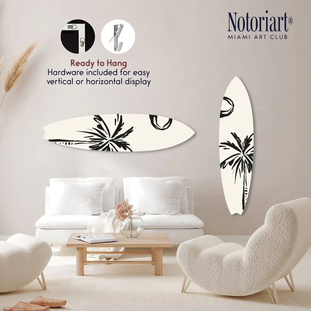Elevate your home decor with NOTORIART's bold and exclusive Acrylic Glass Surfboard Wall Art. Handcrafted in Miami and made-to-order, this decorative surfboard is more than just coastal decor—it's a statement piece designed to reflect your unique style. Made from high-quality die-cut acrylic glass, it boasts a vibrant, high-gloss finish that brings depth, movement, and life to any space. Whether you're looking to capture the essence of coastal living or seeking a modern art piece to enhance your room, this surfboard offers versatile display options, hanging both horizontally and vertically. Each piece is carefully crafted with a wooden frame for easy installation and long-lasting durability. Bring the essence of Miami's artistic flair into your home with a decor item that blends sophistication, authenticity, and individuality.Features: Interior Designers Note: Crafted from die-cut acrylic glass, this decorative surfboard brings bold, vibrant energy to any space. Its hand-polished, glass-like finish creates depth and movement, making it a standout piece in modern decor.Versatile Display Options: This statement piece can be hung both horizontally and vertically. Pre-installed with a wooden frame, hanging hardware, and nails included, it arrives ready to hang. Size per panel: 15"x 60"Handcrafted Excellence: Each piece is meticulously made to order in Miami, reflecting the unique style and quality of NOTORIART's designs. Our skilled artisans ensure attention to detail, producing a luxurious, standout decor item.Premium Materials & Secure Packaging: Constructed from high-quality die-cut acrylic glass with a vibrant, high-gloss finish, this surfboard arrives securely packaged to ensure it reaches you in pristine condition. The wooden frame provides durability and long-lasting beauty.Exclusive Statement Piece: Inspired by Miami's vibrant art scene, this decorative surfboard merges modern design with coastal influences. Ideal for any room, it brings a touch of refined elegance and individuality to your home or office.Wipe clean with a soft, dry microfiber cloth. Avoid using water or cleaning sprays to maintain the high-gloss finish. Not suitable for outdoor use.