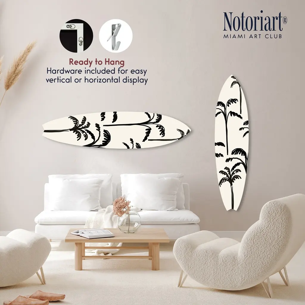 Elevate your home decor with NOTORIART's bold and exclusive Acrylic Glass Surfboard Wall Art. Handcrafted in Miami and made-to-order, this decorative surfboard is more than just coastal decor—it's a statement piece designed to reflect your unique style. Made from high-quality die-cut acrylic glass, it boasts a vibrant, high-gloss finish that brings depth, movement, and life to any space. Whether you're looking to capture the essence of coastal living or seeking a modern art piece to enhance your room, this surfboard offers versatile display options, hanging both horizontally and vertically. Each piece is carefully crafted with a wooden frame for easy installation and long-lasting durability. Bring the essence of Miami's artistic flair into your home with a decor item that blends sophistication, authenticity, and individuality.Features: Interior Designers Note: Crafted from die-cut acrylic glass, this decorative surfboard brings bold, vibrant energy to any space. Its hand-polished, glass-like finish creates depth and movement, making it a standout piece in modern decor.Versatile Display Options: This statement piece can be hung both horizontally and vertically. Pre-installed with a wooden frame, hanging hardware, and nails included, it arrives ready to hang. Size per panel: 15"x 60"Handcrafted Excellence: Each piece is meticulously made to order in Miami, reflecting the unique style and quality of NOTORIART's designs. Our skilled artisans ensure attention to detail, producing a luxurious, standout decor item.Premium Materials & Secure Packaging: Constructed from high-quality die-cut acrylic glass with a vibrant, high-gloss finish, this surfboard arrives securely packaged to ensure it reaches you in pristine condition. The wooden frame provides durability and long-lasting beauty.Exclusive Statement Piece: Inspired by Miami's vibrant art scene, this decorative surfboard merges modern design with coastal influences. Ideal for any room, it brings a touch of refined elegance and individuality to your home or office.Wipe clean with a soft, dry microfiber cloth. Avoid using water or cleaning sprays to maintain the high-gloss finish. Not suitable for outdoor use.