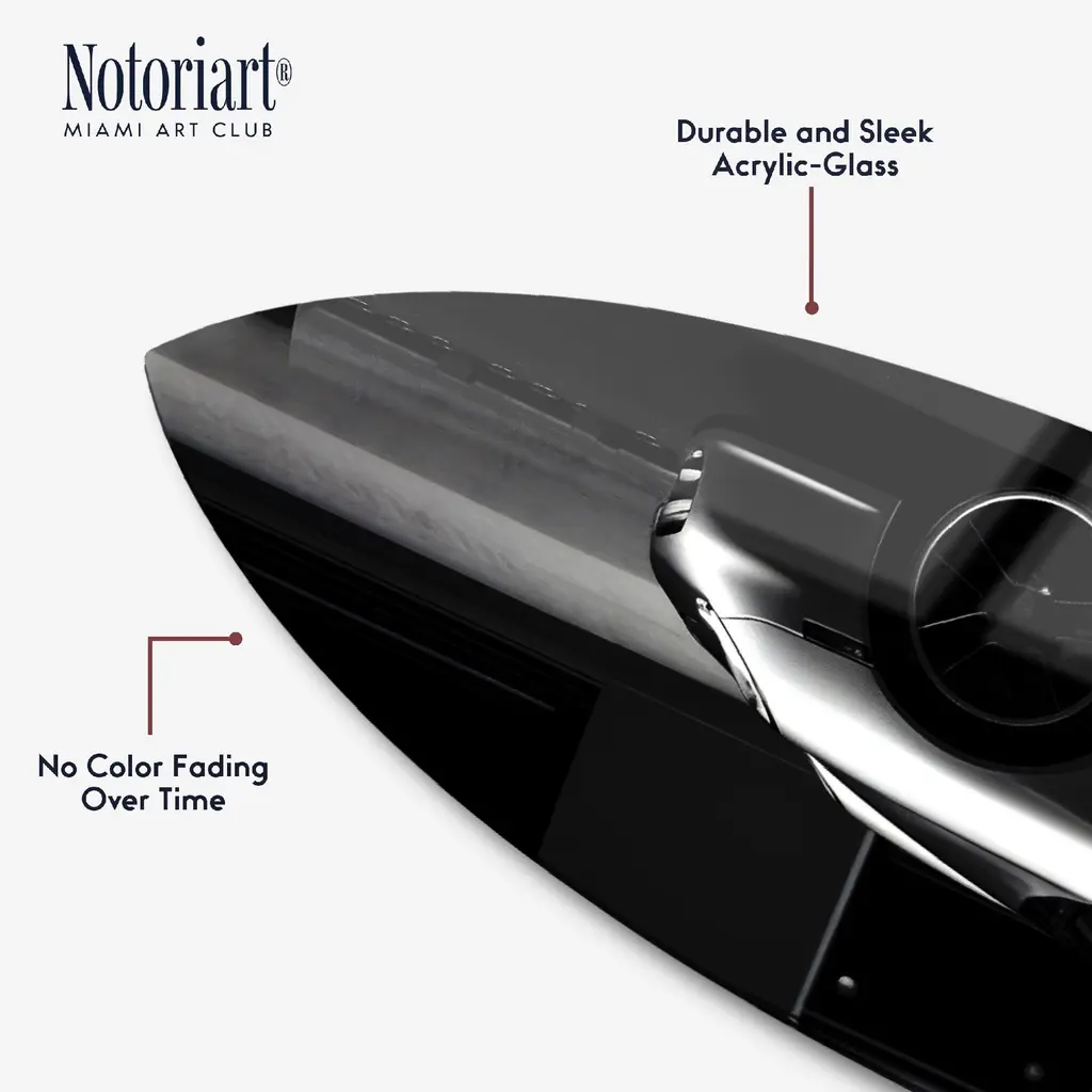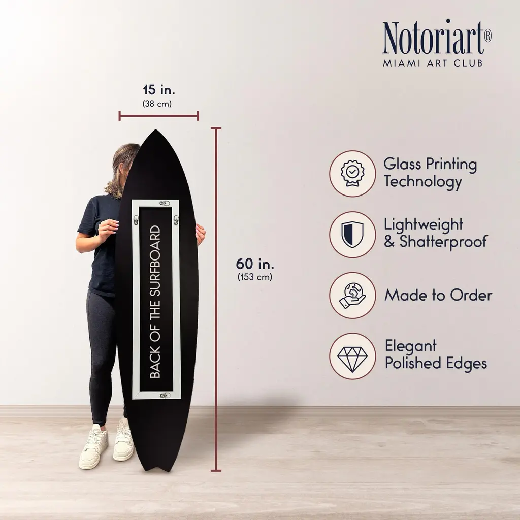 Elevate your home decor with NOTORIART's bold and exclusive Acrylic Glass Surfboard Wall Art. Handcrafted in Miami and made-to-order, this decorative surfboard is more than just coastal decor—it's a statement piece designed to reflect your unique style. Made from high-quality die-cut acrylic glass, it boasts a vibrant, high-gloss finish that brings depth, movement, and life to any space. Whether you're looking to capture the essence of coastal living or seeking a modern art piece to enhance your room, this surfboard offers versatile display options, hanging both horizontally and vertically. Each piece is carefully crafted with a wooden frame for easy installation and long-lasting durability. Bring the essence of Miami's artistic flair into your home with a decor item that blends sophistication, authenticity, and individuality.Features: Interior Designers Note: Crafted from die-cut acrylic glass, this decorative surfboard brings bold, vibrant energy to any space. Its hand-polished, glass-like finish creates depth and movement, making it a standout piece in modern decor.Versatile Display Options: This statement piece can be hung both horizontally and vertically. Pre-installed with a wooden frame, hanging hardware, and nails included, it arrives ready to hang. Size per panel: 15"x 60"Handcrafted Excellence: Each piece is meticulously made to order in Miami, reflecting the unique style and quality of NOTORIART's designs. Our skilled artisans ensure attention to detail, producing a luxurious, standout decor item.Premium Materials & Secure Packaging: Constructed from high-quality die-cut acrylic glass with a vibrant, high-gloss finish, this surfboard arrives securely packaged to ensure it reaches you in pristine condition. The wooden frame provides durability and long-lasting beauty.Exclusive Statement Piece: Inspired by Miami's vibrant art scene, this decorative surfboard merges modern design with coastal influences. Ideal for any room, it brings a touch of refined elegance and individuality to your home or office.Wipe clean with a soft, dry microfiber cloth. Avoid using water or cleaning sprays to maintain the high-gloss finish. Not suitable for outdoor use.