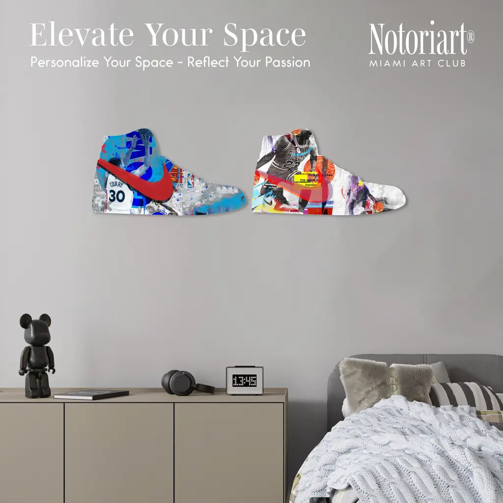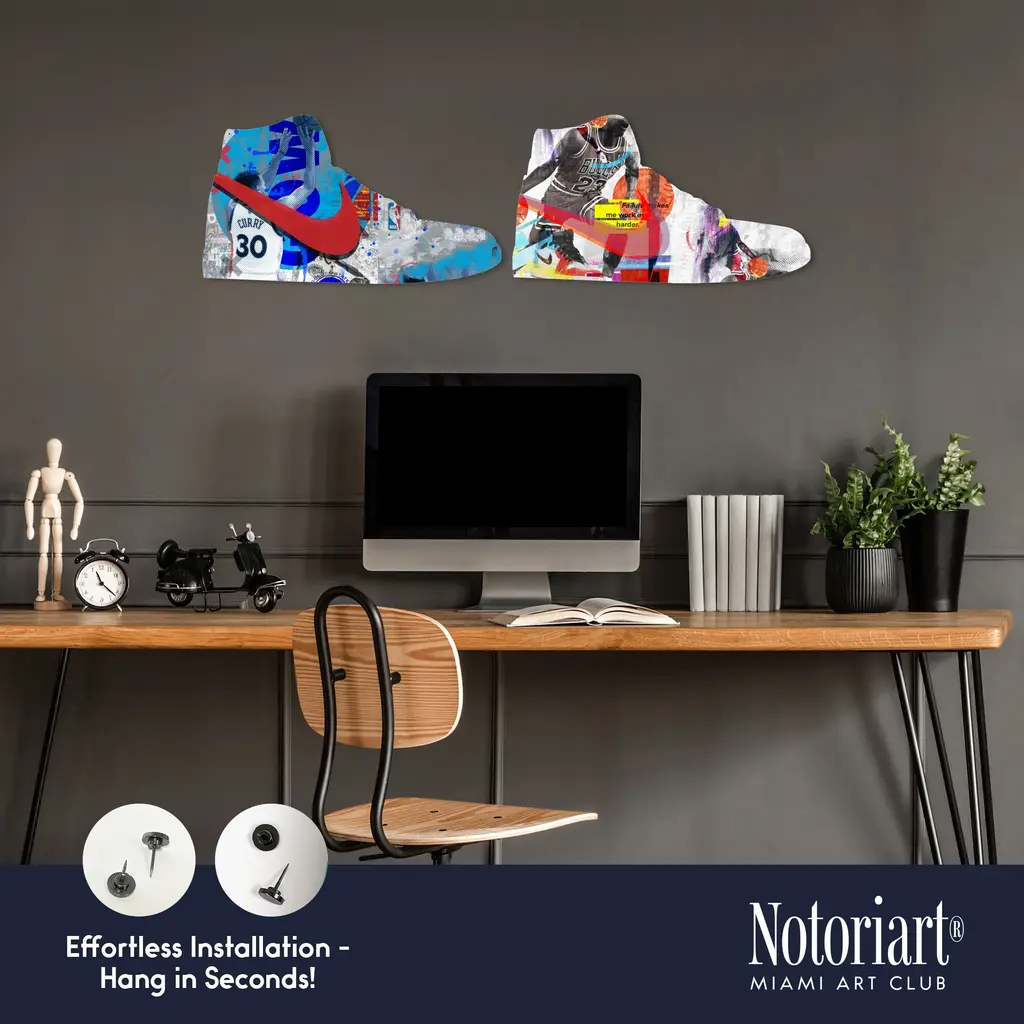 Discover the ultimate fusion of sneaker culture, street art, and high-end decor with NOTORIART's Acrylic Glass Sneaker Wall Art. This 19" x 10.5" masterpiece blends iconic sneaker designs with vibrant graffiti and hand-polished details. With just 2 small holes, this collectible piece includes 4 durable aluminum thumbtacks (2 black, 2 silver) for easy hanging—no complex tools needed. Ideal for sneakerheads and modern art collectors, this exclusive design is handmade to order in Miami, making it a bold statement piece for any space.Features: Interior Designer's Note: This collectible sneaker-shaped wall decor is crafted from precision-cut acrylic glass, showcasing vibrant graffiti elements and bold colors for a standout piece that energizes any room.Simple, Sleek Hanging Solution: With just 2 small holes and 4 sturdy aluminum thumbtacks provided (2 black, 2 silver), hanging this art is effortless. Push the thumbtacks into the wall—no drills or measuring required.Graffiti-Inspired Street Style: This high-quality, hand-polished acrylic glass art captures the raw energy of urban culture, making it a bold expression of modern street style and pop art.Premium Materials & Secure Packaging: Featuring a glossy, vibrant finish, each piece is securely packaged to ensure it arrives in flawless, collectible condition.Exclusive NOTORIART Collectible: Handcrafted in Miami, this limited-edition wall art is perfect for sneaker lovers and urban culture enthusiasts, serving as a unique expression of individuality.To preserve its high-gloss finish, clean with a soft, dry microfiber cloth. Avoid using water or sprays. Suitable for indoor use only.