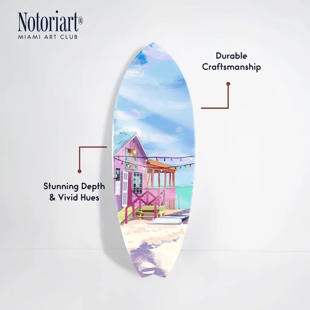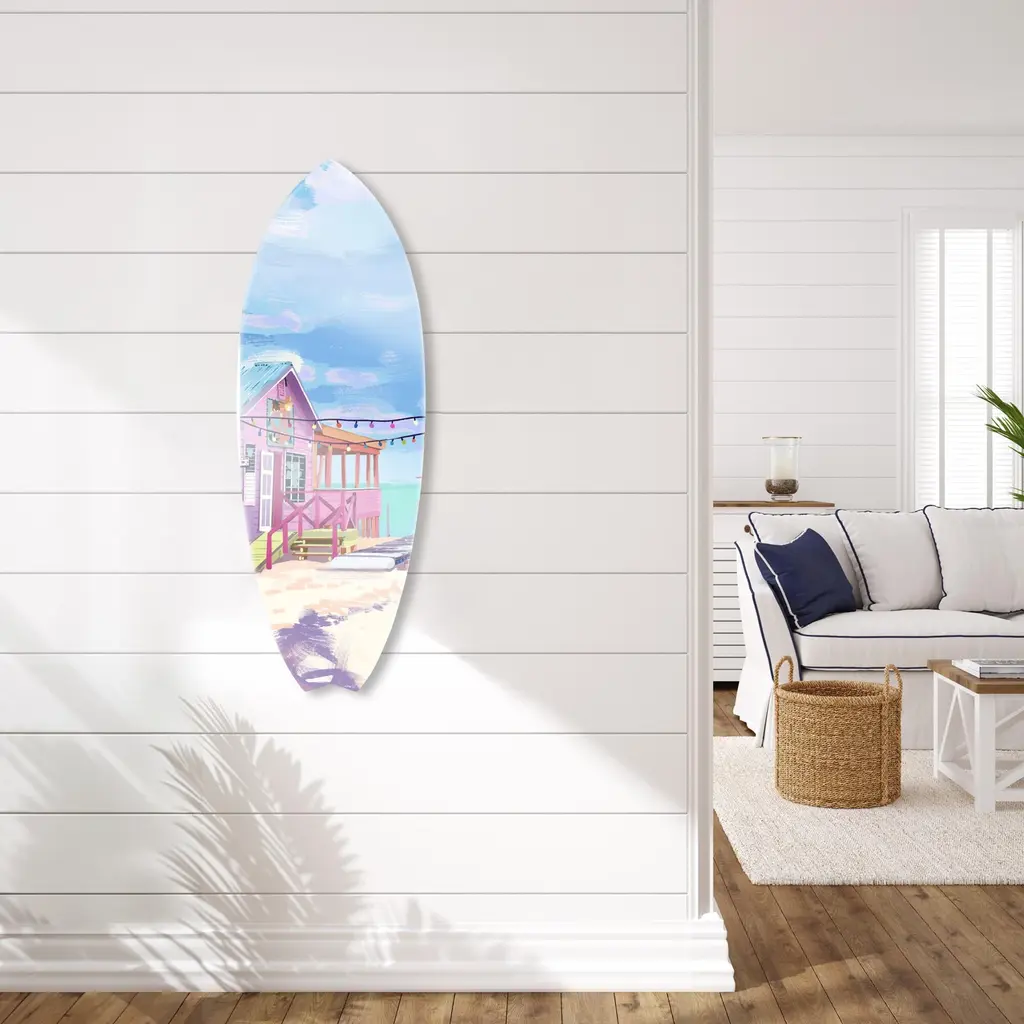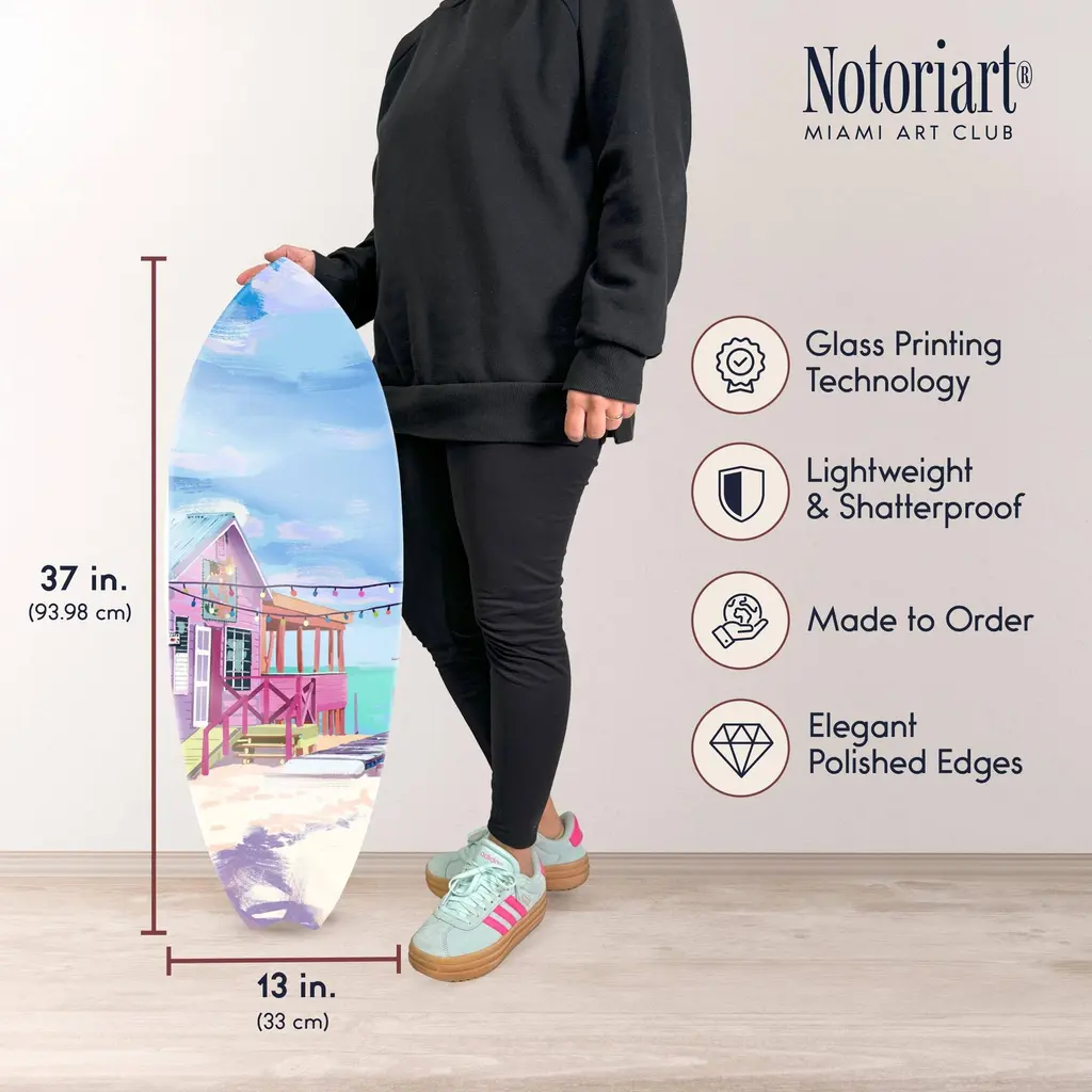 Elevate your home decor with NOTORIART's bold and exclusive Acrylic Glass Skimboard Wall Art. Handcrafted in Miami and made-to-order, this decorative skimboard is more than just coastal decor—it's a statement piece designed to reflect your unique style. Made from high-quality die-cut acrylic glass, it boasts a vibrant, high-gloss finish that brings depth, movement, and life to any space. Whether you're looking to capture the essence of coastal living or seeking a modern art piece to enhance your room, this skimboard offers versatile display options, hanging both horizontally and vertically. Featuring just 2 small holes, it comes with 4 durable aluminum thumbtacks (2 black, 2 silver) for effortless hanging—no complicated tools required. Bring the essence of Miami's artistic flair into your home with a decor item that blends sophistication, authenticity, and individuality.Features: Interior Designers Note: Crafted from die-cut acrylic glass, this decorative skimboard brings bold, vibrant energy to any space. Its hand-polished, glass-like finish creates depth and movement, making it a standout piece in modern decor.Simple, Sleek Hanging Solution: With just 2 small holes and 4 sturdy aluminum thumbtacks provided (2 black, 2 silver), hanging this art is effortless. Push the thumbtacks into the wall—no tools or measuring needed.Handcrafted Excellence: Each piece is meticulously made to order in Miami, reflecting the unique style and quality of NOTORIART's designs. Our skilled artisans ensure attention to detail, producing a luxurious, standout decor item.Premium Materials & Secure Packaging: Constructed from high-quality die-cut acrylic glass with a vibrant, high-gloss finish, this skimboard arrives securely packaged to ensure it reaches you in pristine condition. Exclusive Statement Piece: Inspired by Miami's vibrant art scene, this decorative skimboard merges modern design with coastal influences. Ideal for any room, it brings a touch of refined elegance and individuality to your home or office.Wipe clean with a soft, dry microfiber cloth. Avoid using water or cleaning sprays to maintain the high-gloss finish. Not suitable for outdoor use.