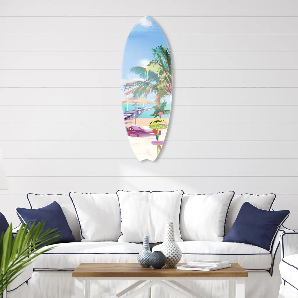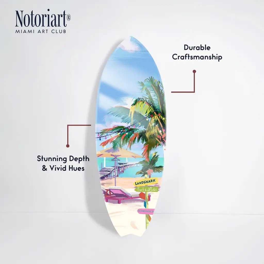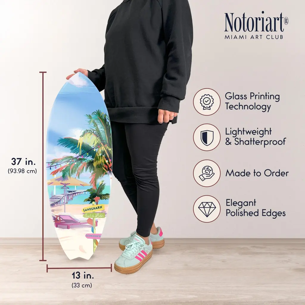 Elevate your home decor with NOTORIART's bold and exclusive Acrylic Glass Skimboard Wall Art. Handcrafted in Miami and made-to-order, this decorative skimboard is more than just coastal decor—it's a statement piece designed to reflect your unique style. Made from high-quality die-cut acrylic glass, it boasts a vibrant, high-gloss finish that brings depth, movement, and life to any space. Whether you're looking to capture the essence of coastal living or seeking a modern art piece to enhance your room, this skimboard offers versatile display options, hanging both horizontally and vertically. Featuring just 2 small holes, it comes with 4 durable aluminum thumbtacks (2 black, 2 silver) for effortless hanging—no complicated tools required. Bring the essence of Miami's artistic flair into your home with a decor item that blends sophistication, authenticity, and individuality.Features: Interior Designers Note: Crafted from die-cut acrylic glass, this decorative skimboard brings bold, vibrant energy to any space. Its hand-polished, glass-like finish creates depth and movement, making it a standout piece in modern decor.Simple, Sleek Hanging Solution: With just 2 small holes and 4 sturdy aluminum thumbtacks provided (2 black, 2 silver), hanging this art is effortless. Push the thumbtacks into the wall—no tools or measuring needed.Handcrafted Excellence: Each piece is meticulously made to order in Miami, reflecting the unique style and quality of NOTORIART's designs. Our skilled artisans ensure attention to detail, producing a luxurious, standout decor item.Premium Materials & Secure Packaging: Constructed from high-quality die-cut acrylic glass with a vibrant, high-gloss finish, this skimboard arrives securely packaged to ensure it reaches you in pristine condition. Exclusive Statement Piece: Inspired by Miami's vibrant art scene, this decorative skimboard merges modern design with coastal influences. Ideal for any room, it brings a touch of refined elegance and individuality to your home or office.Wipe clean with a soft, dry microfiber cloth. Avoid using water or cleaning sprays to maintain the high-gloss finish. Not suitable for outdoor use.