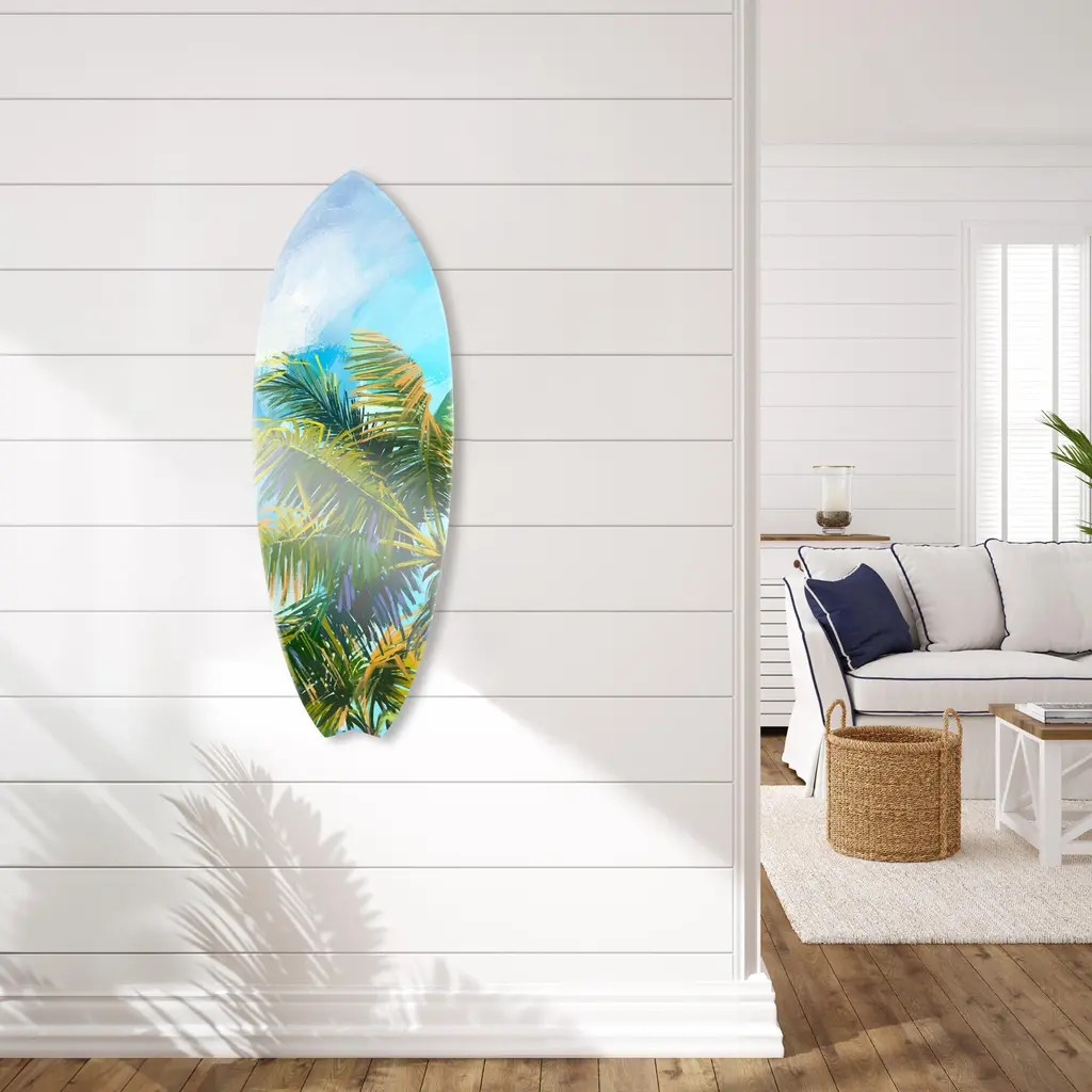 Notoriart Retro Coastal Art Coastal Acrylic Wall Art Easy-To-Hang, 1 Panel 13" X 37" - Clear Sky Palm