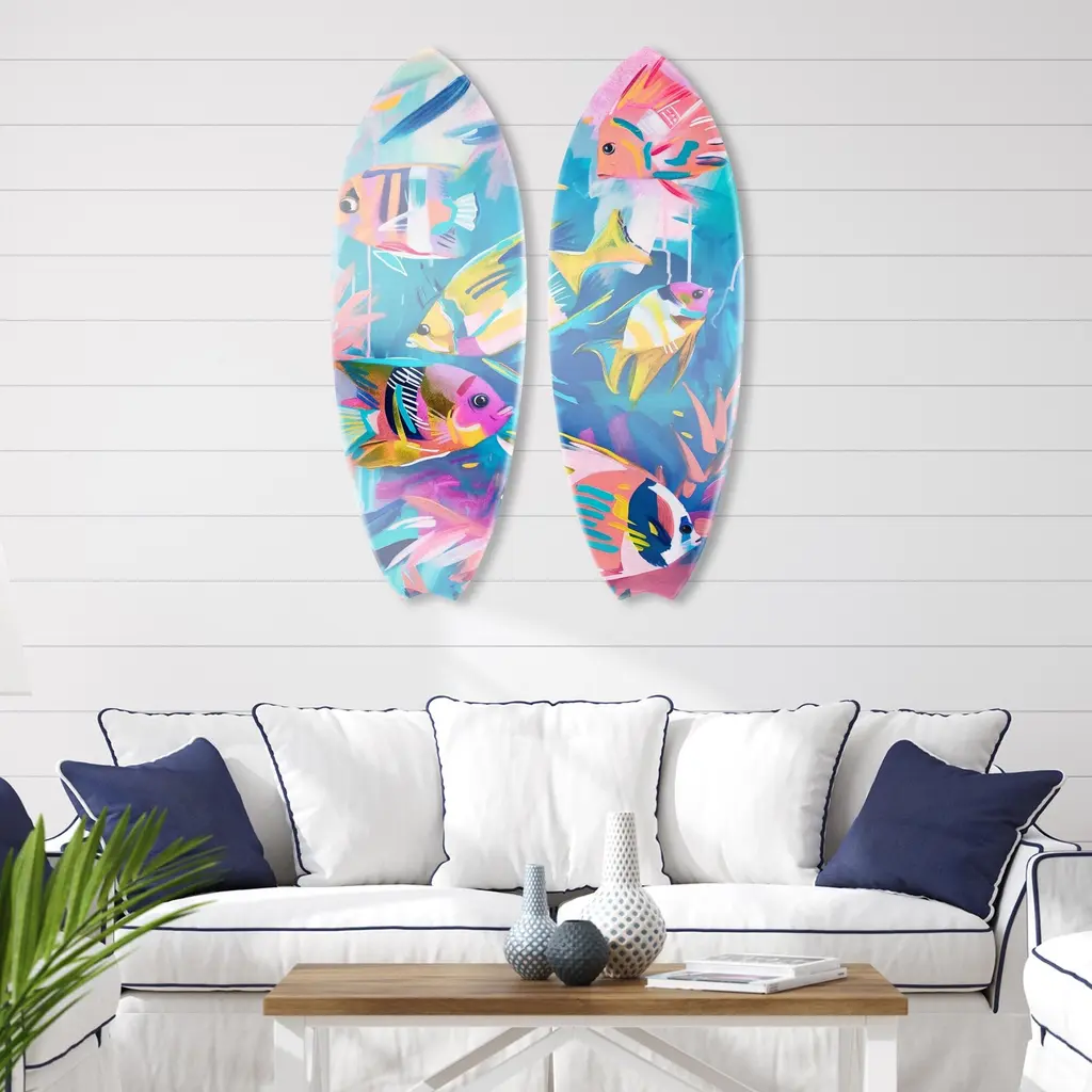 Notoriart Retro Coastal Art Coastal Acrylic Wall Art Easy-To-Hang, 2 Panel 13" X 37" - Colorful Sealife