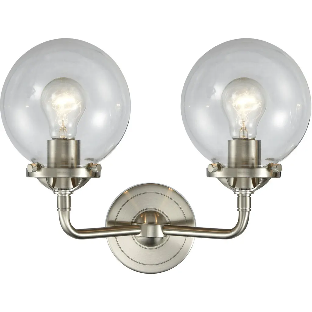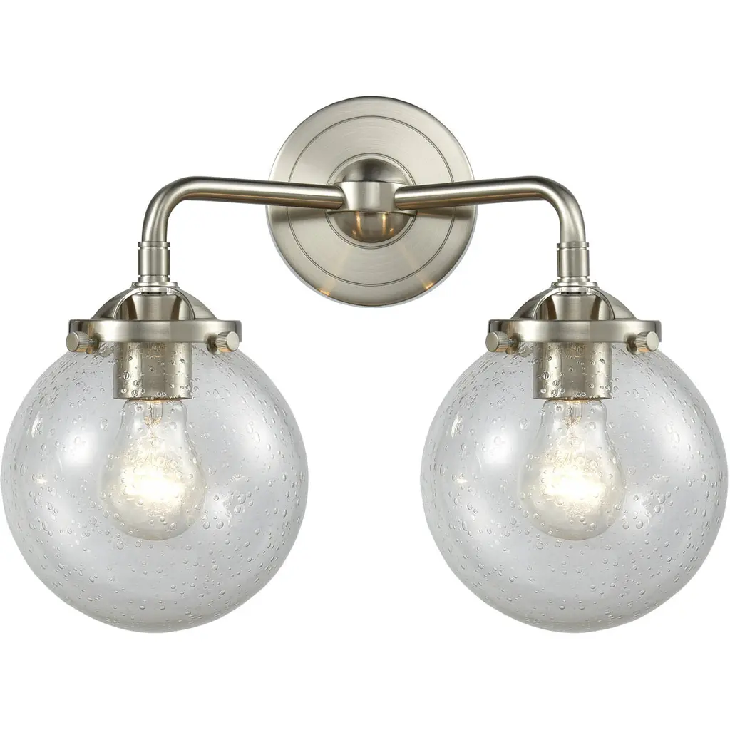 Nouveau Beacon 2 Light 14 Inch Brushed Satin Nickel Bath Vanity Light Wall Light In Clear Glass, Nouveau