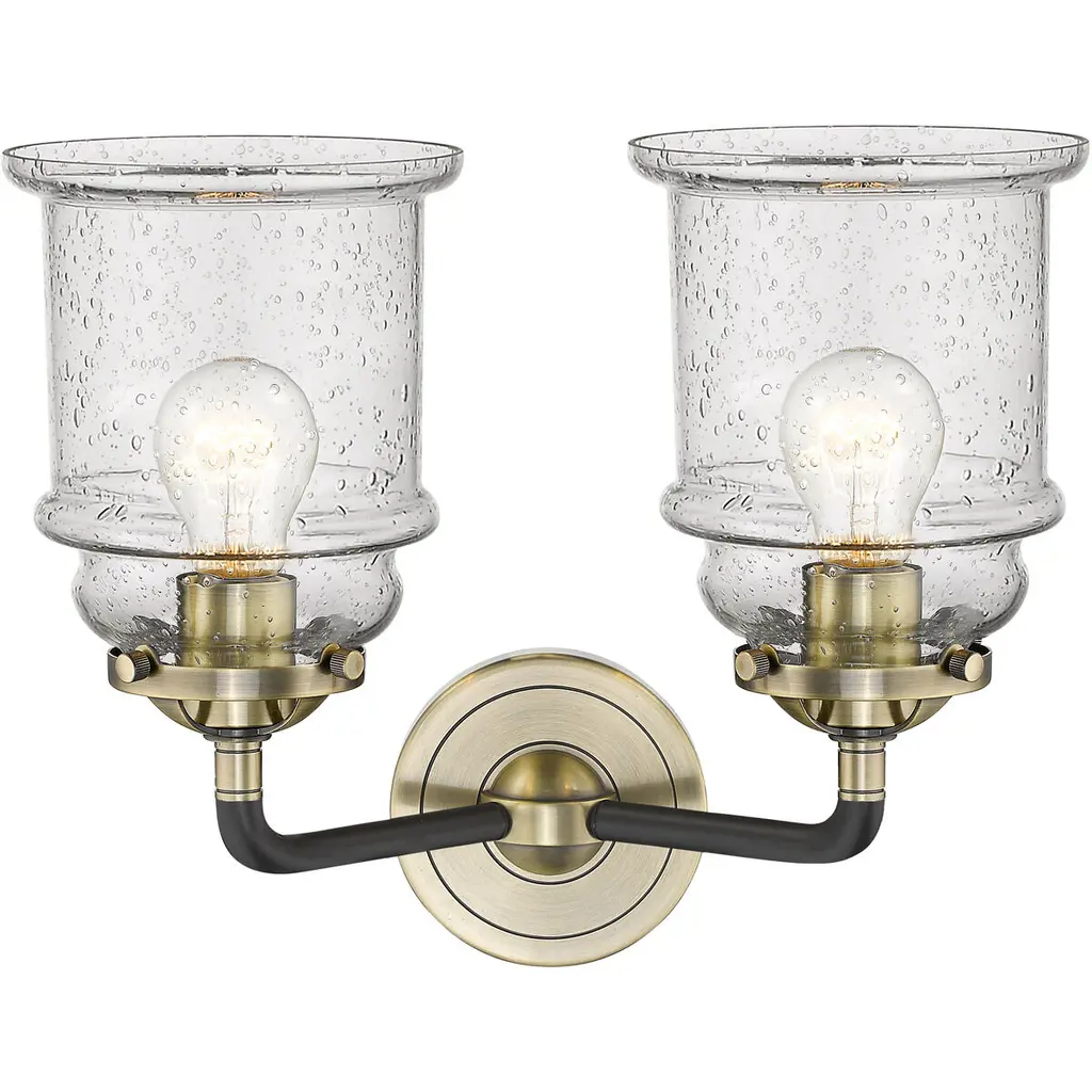 Nouveau Canton 2 Light 14 Inch Black Antique Brass Bath Vanity Light Wall Light In Seedy Glass, Nouveau