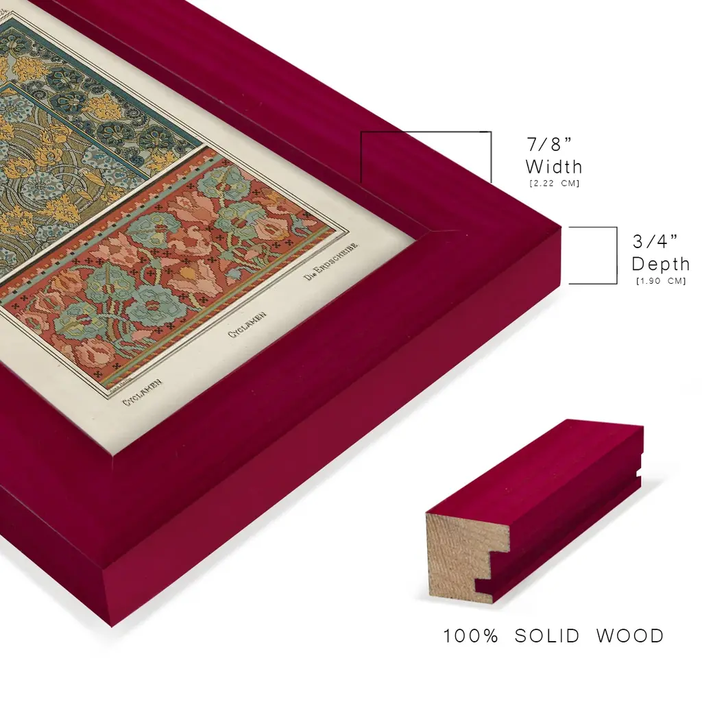 Nouveau Decorative I -EZ SWITCH Framed Print w/glass-Cherry Red A delightful, framed print. Featuring a solid wood frame with real wood glass. This premium print is giclee quality. In addition, every frame features a removable back and table top stand. This allows you to change your art in the future or to just stand the art on a table for a new look. We are sure you'll enjoy our new series of EZ SWITCH Framed Art. Solid Wood Frame Real Glass Removable / Replaceable Art Built in Tabletop Stand Sizes range from 4x6 up to 12x15 - buy just one or pair them up as sets as you see fit.