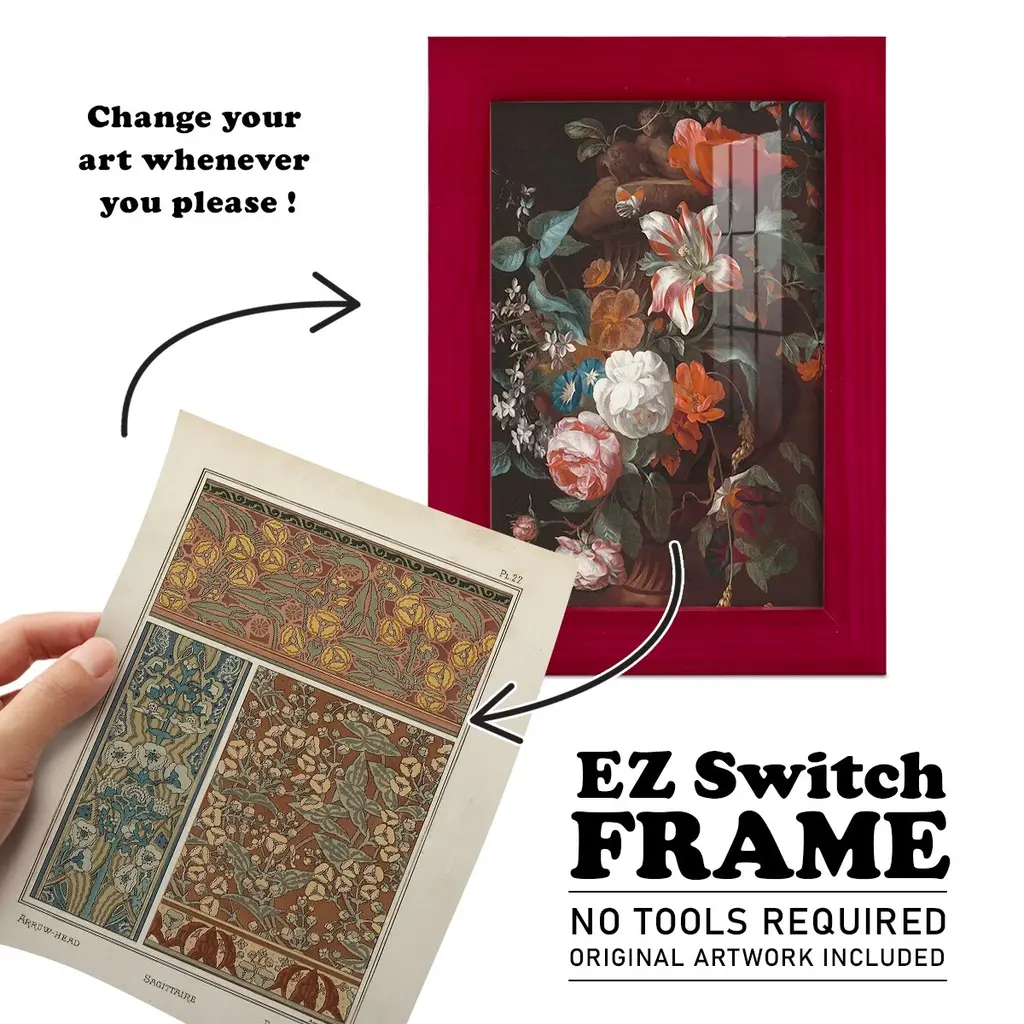 Nouveau Decorative II -EZ SWITCH Framed Print w/glass-Cherry Red A delightful, framed print. Featuring a solid wood frame with real wood glass. This premium print is giclee quality. In addition, every frame features a removable back and table top stand. This allows you to change your art in the future or to just stand the art on a table for a new look. We are sure you'll enjoy our new series of EZ SWITCH Framed Art. Solid Wood Frame Real Glass Removable / Replaceable Art Built in Tabletop Stand Sizes range from 4x6 up to 12x15 - buy just one or pair them up as sets as you see fit.