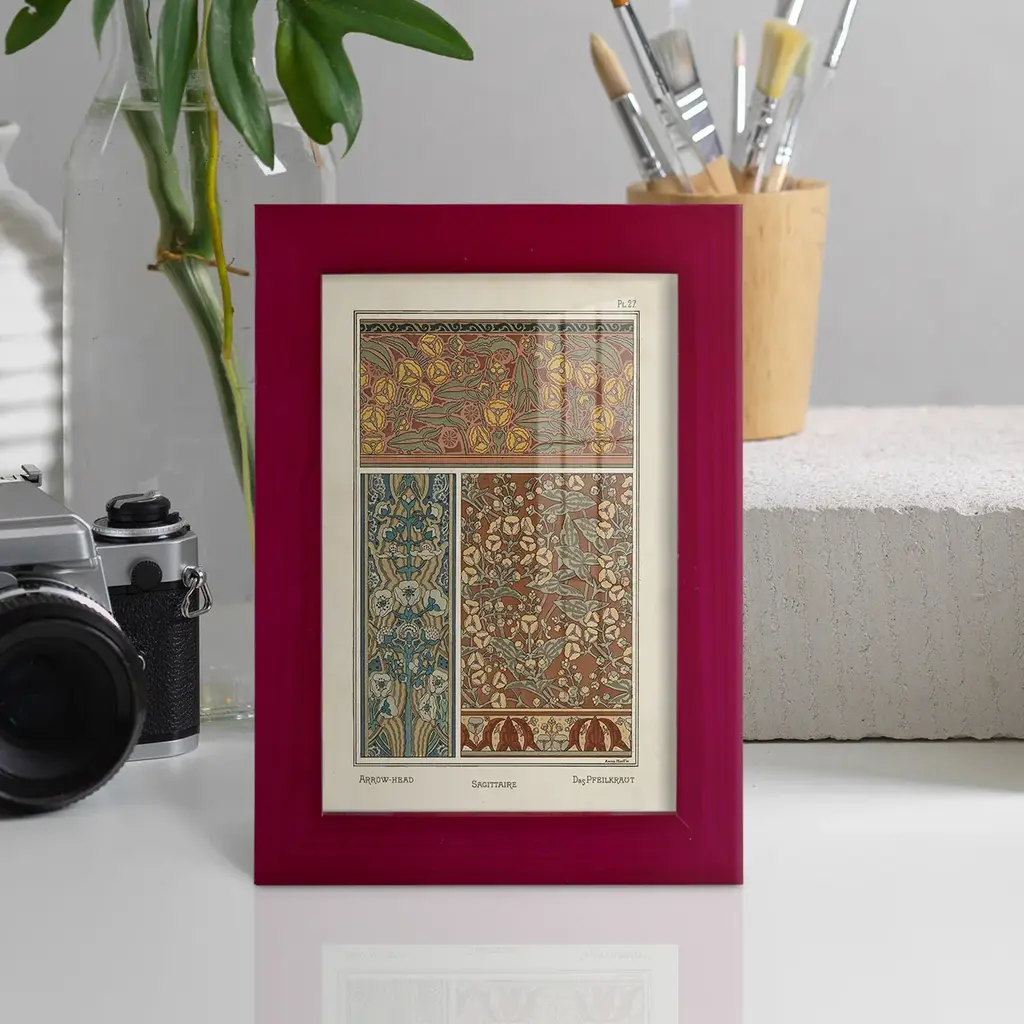 Nouveau Decorative II -EZ SWITCH Framed Print w/glass-Cherry Red A delightful, framed print. Featuring a solid wood frame with real wood glass. This premium print is giclee quality. In addition, every frame features a removable back and table top stand. This allows you to change your art in the future or to just stand the art on a table for a new look. We are sure you'll enjoy our new series of EZ SWITCH Framed Art. Solid Wood Frame Real Glass Removable / Replaceable Art Built in Tabletop Stand Sizes range from 4x6 up to 12x15 - buy just one or pair them up as sets as you see fit.