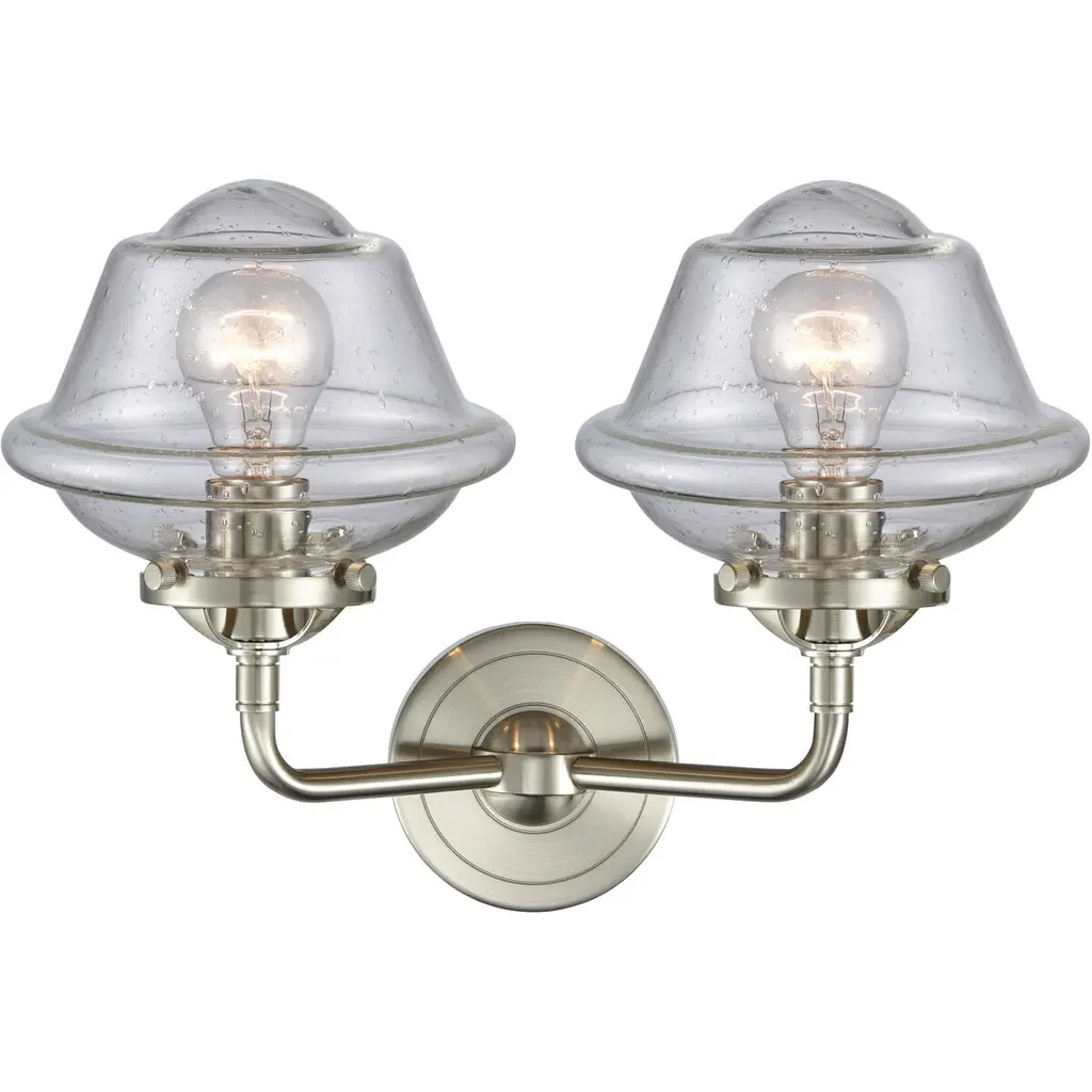 Nouveau Small Oxford Led 15.5 Inch Brushed Satin Nickel Bath Vanity Light Wall Light In Seedy Glass, Nouveau