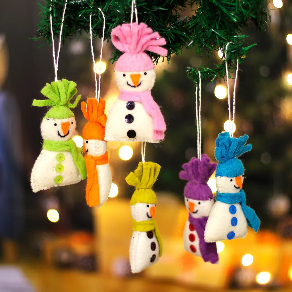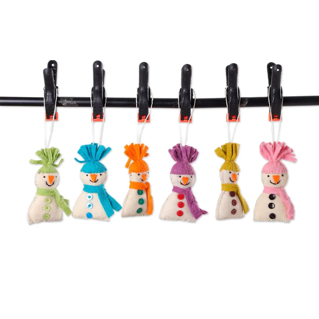 Novica Handmade Holiday Snowmen Wool Felt Ornaments (Set Of 6) - Multi