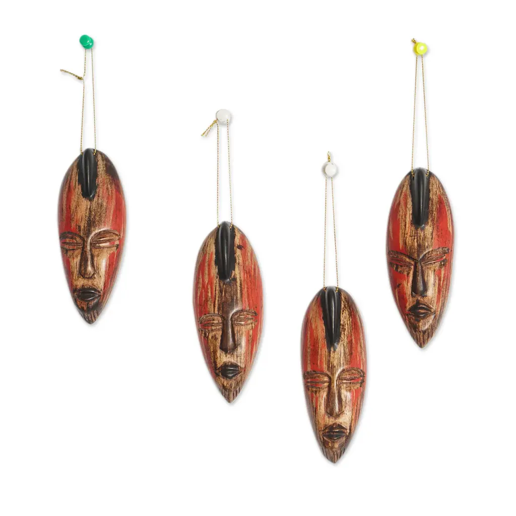 Novica Handmade Intense Facets Wood Ornaments (Set Of 4) - Red