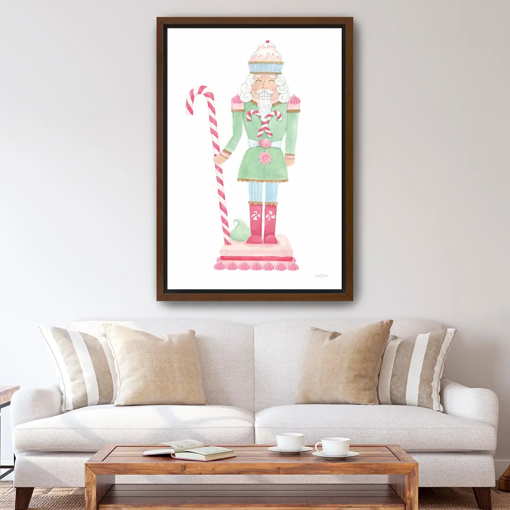 This Christmas canvas print features classic nutcracker figures in a festive palette that evokes warmth and wonder. Ideal for traditional or eclectic interiors, it adds a cheerful touch to your seasonal styling. Our Gallery Wrap Canvas Prints are proudly assembled with high quality materials in California, USA. Each piece is printed on a thick, archival grade canvas using Giclee technology. It is then hand-stretched by our experienced artisans over solid wood bars, which will not warp over time. The final product is a piece personally crafted for you to confidently display on your wall. Care and Assembly: Ensure that the location of your piece has little to no exposure to heat, sunlight, and moisture. Wipe clean, only if needed. Each piece includes hanging hardware to hang on your wall vertically.