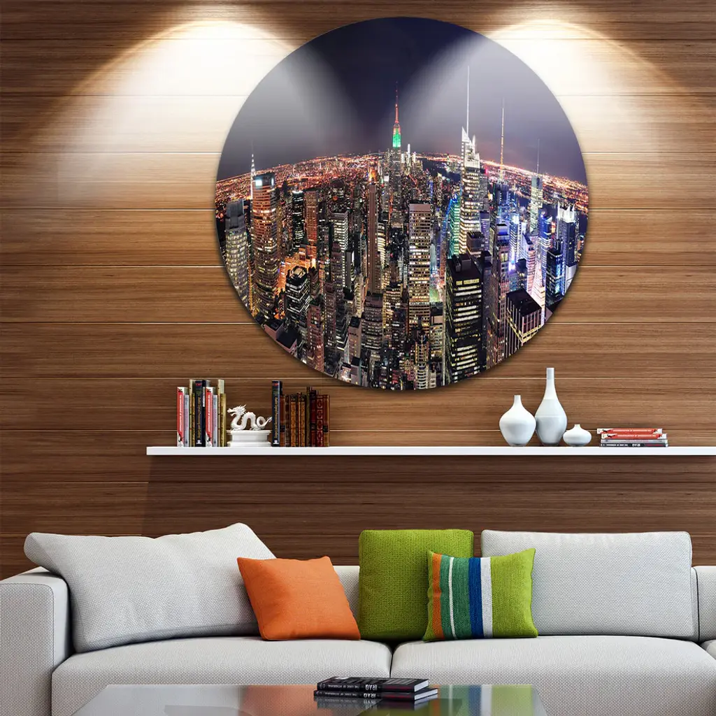 Nyc Manhattan Aerial View, Cityscape Photo Disc Metal Wall Art, 38"