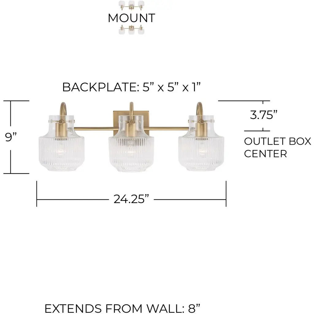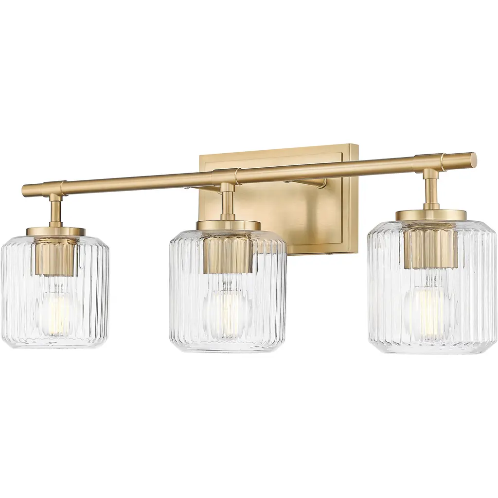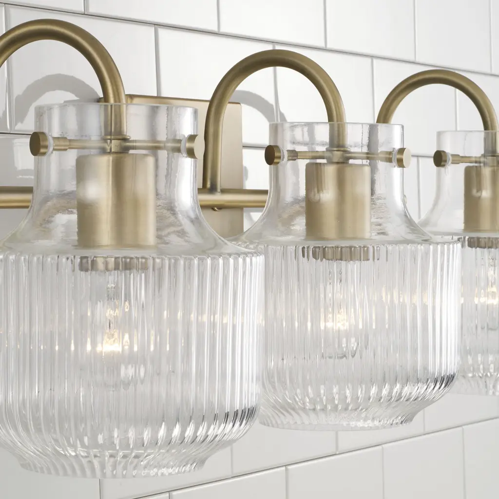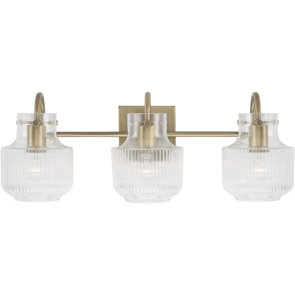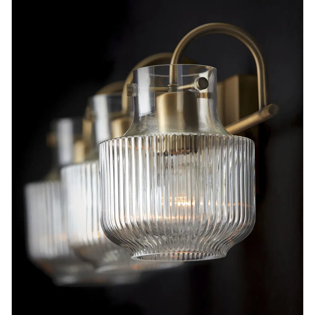 Fluted glass and a tulip silhouette create organic intrigue with the Nyla 3-Light Vanity. The warmth of the Aged Brass finish reflects a sleek and stunning style. Also available in a 2-Light.