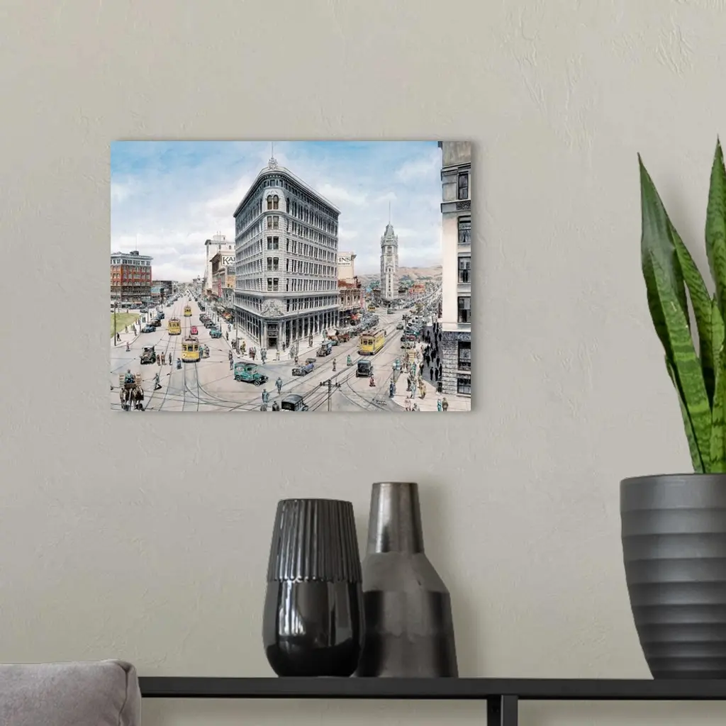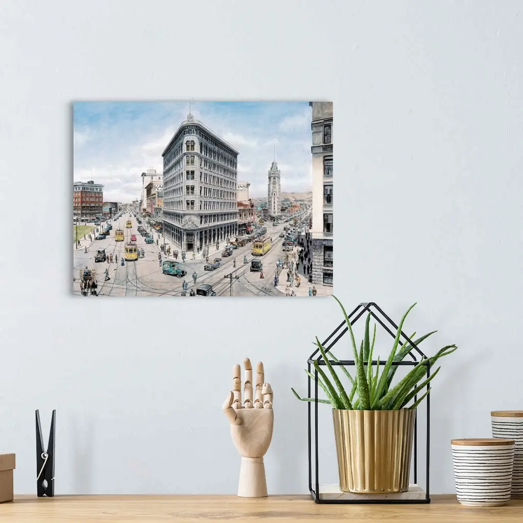 Contemporary painting of a bustling street in Oakland.