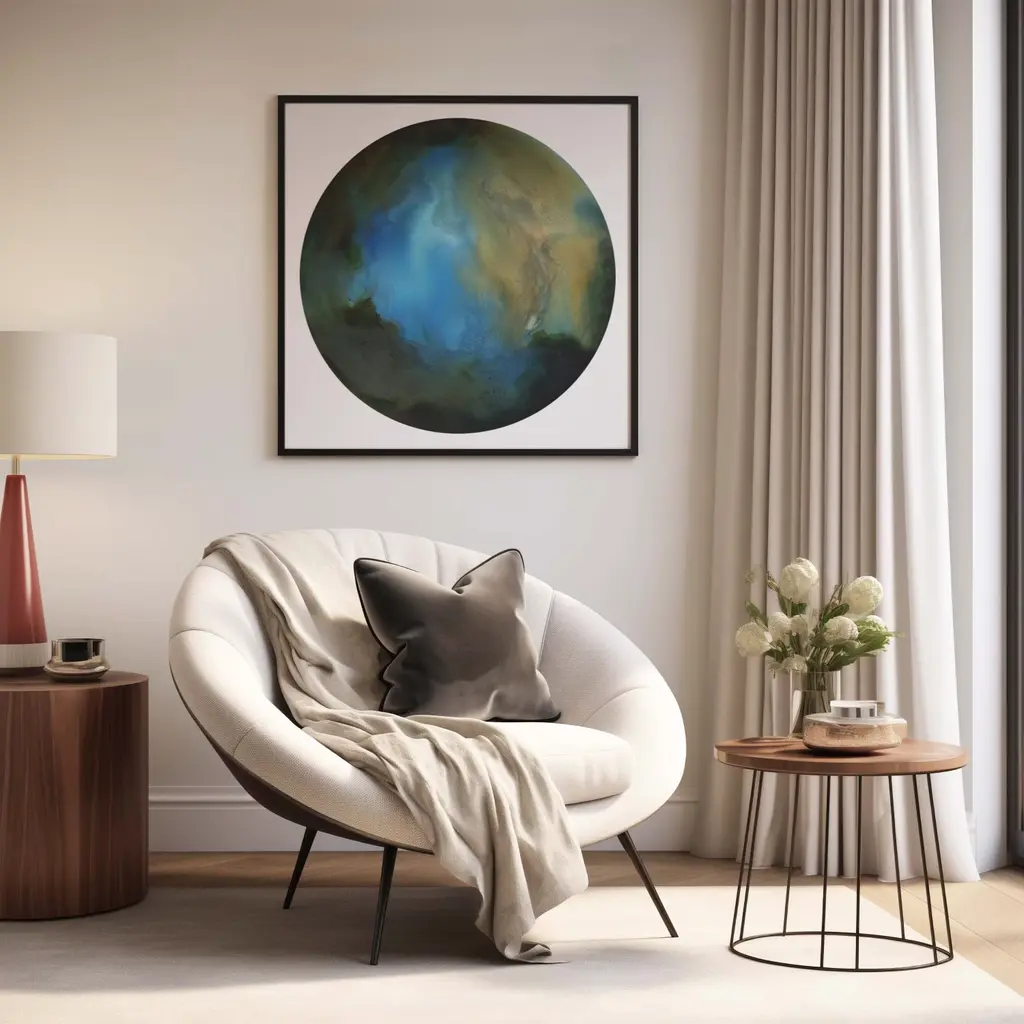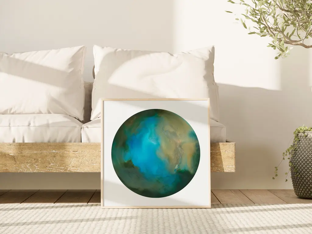 A tranquil mix of deep greens, soft blues, and warm orange. Oasis is about creating moments of stillness and escape—a place to breathe and reset.* Perfect for – Yoga corners, relaxation nooks, or therapy spaces.* A meaningful gift – Brings peace and harmony into any space.