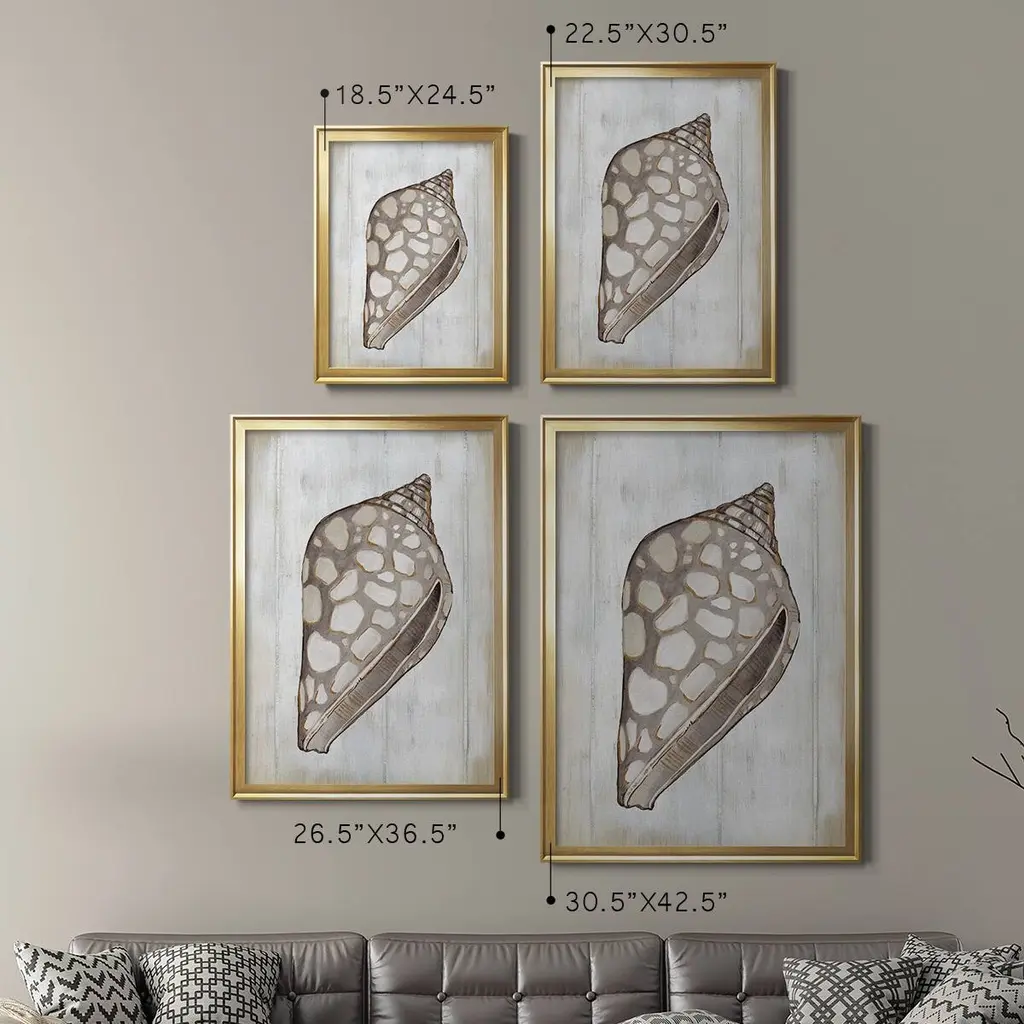 Ocean Cone I Premium Framed Print - Ready to Hang A Premium Framed Print created to last. Framed in distressed wood and available in an array of sizes and colors Featuring a beveled a solid wood stretcher bar, each piece comes ready to hand 4 SIZES AVAILABLE 30.5''X42.5'' - Overall Size 26.5'X36.5'' - Overall Size 22.5''x30.5'' - Overall Size 18.5''x24.5'' - Overall Size Each piece is made to order. Each piece comes with hanging hardware. Made in the USA Ready to Hang