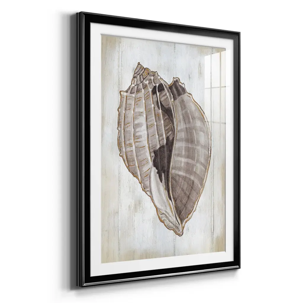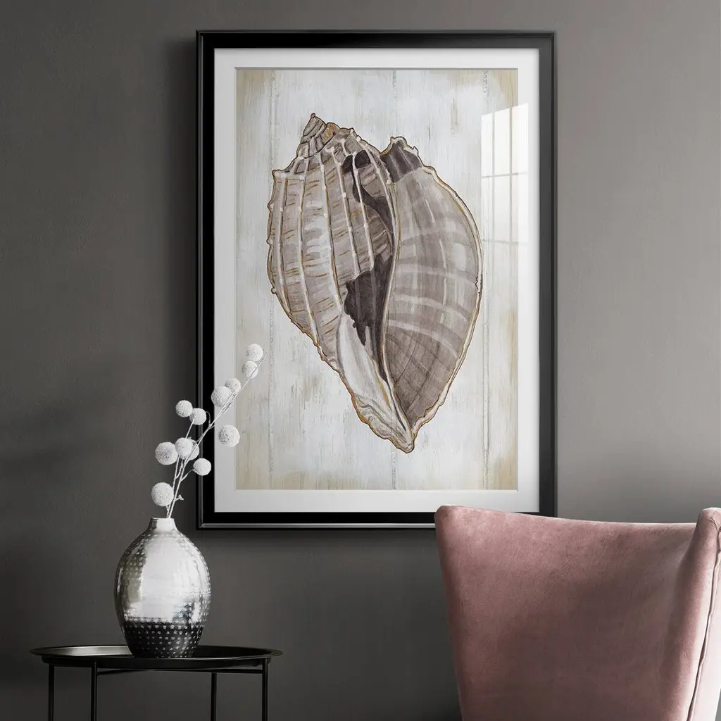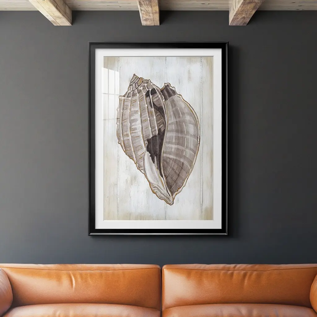 Ocean Cone II Premium Framed Print - Ready to Hang A Premium Framed Print created to last. Framed in distressed wood and available in an array of sizes and colors Featuring a beveled a solid wood stretcher bar, each piece comes ready to hand 4 SIZES AVAILABLE 30.5''X42.5'' - Overall Size 26.5'X36.5'' - Overall Size 22.5''x30.5'' - Overall Size 18.5''x24.5'' - Overall Size Each piece is made to order. Each piece comes with hanging hardware. Made in the USA Ready to Hang Giclee Paper Print Acrylic Glass Beveled Matt Board