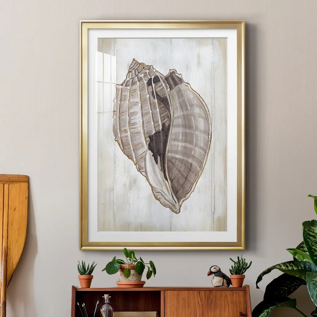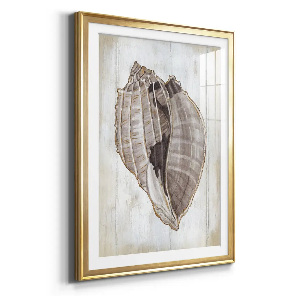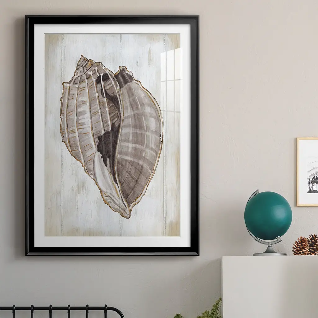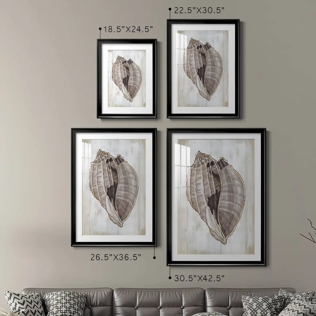 Ocean Cone II Premium Framed Print - Ready to Hang A Premium Framed Print created to last. Framed in distressed wood and available in an array of sizes and colors Featuring a beveled a solid wood stretcher bar, each piece comes ready to hand 4 SIZES AVAILABLE 30.5''X42.5'' - Overall Size 26.5'X36.5'' - Overall Size 22.5''x30.5'' - Overall Size 18.5''x24.5'' - Overall Size Each piece is made to order. Each piece comes with hanging hardware. Made in the USA Ready to Hang Giclee Paper Print Acrylic Glass Beveled Matt Board