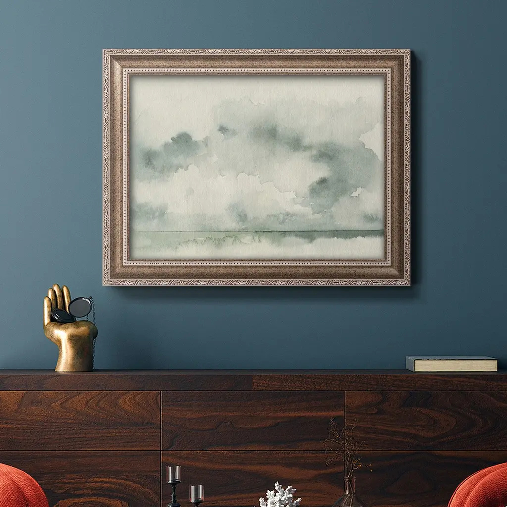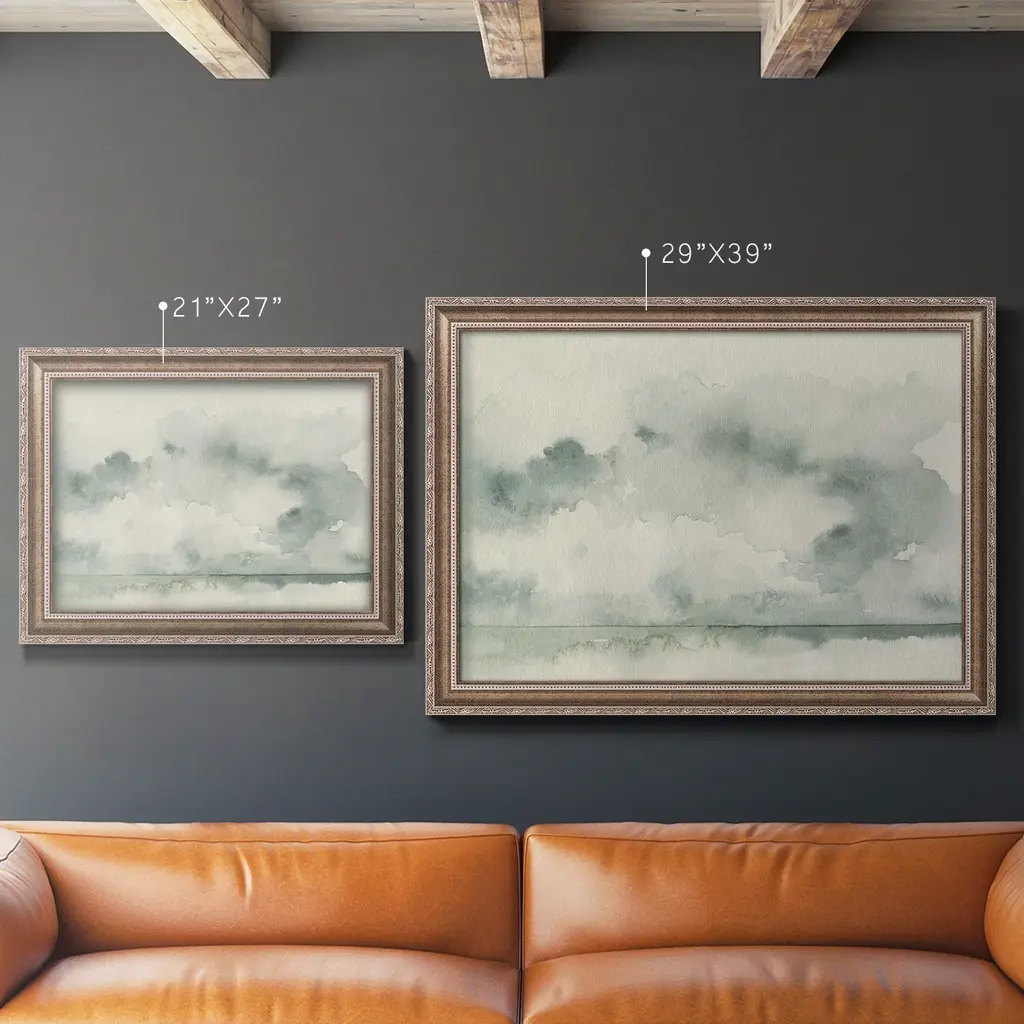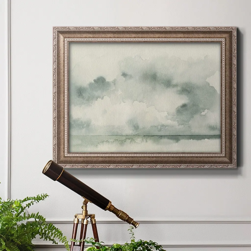 Ocean Impression III Premium Framed Canvas- Ready to Hang A Premium Framed Canvas created to last. Framed in distressed wood and available in an array of sizes and colors Featuring a beveled a solid wood stretcher bar, each piece comes ready to hand 3 SIZES AVAILABLE 16''X20'' - Overall Size 18'X27'' - Overall Size 24''x36'' - Overall Size Each piece is made to order. Each piece comes with hanging hardware. Made in the USA Ready to Hang Giclee Paper Print Acrylic Glass Beveled Matt Board