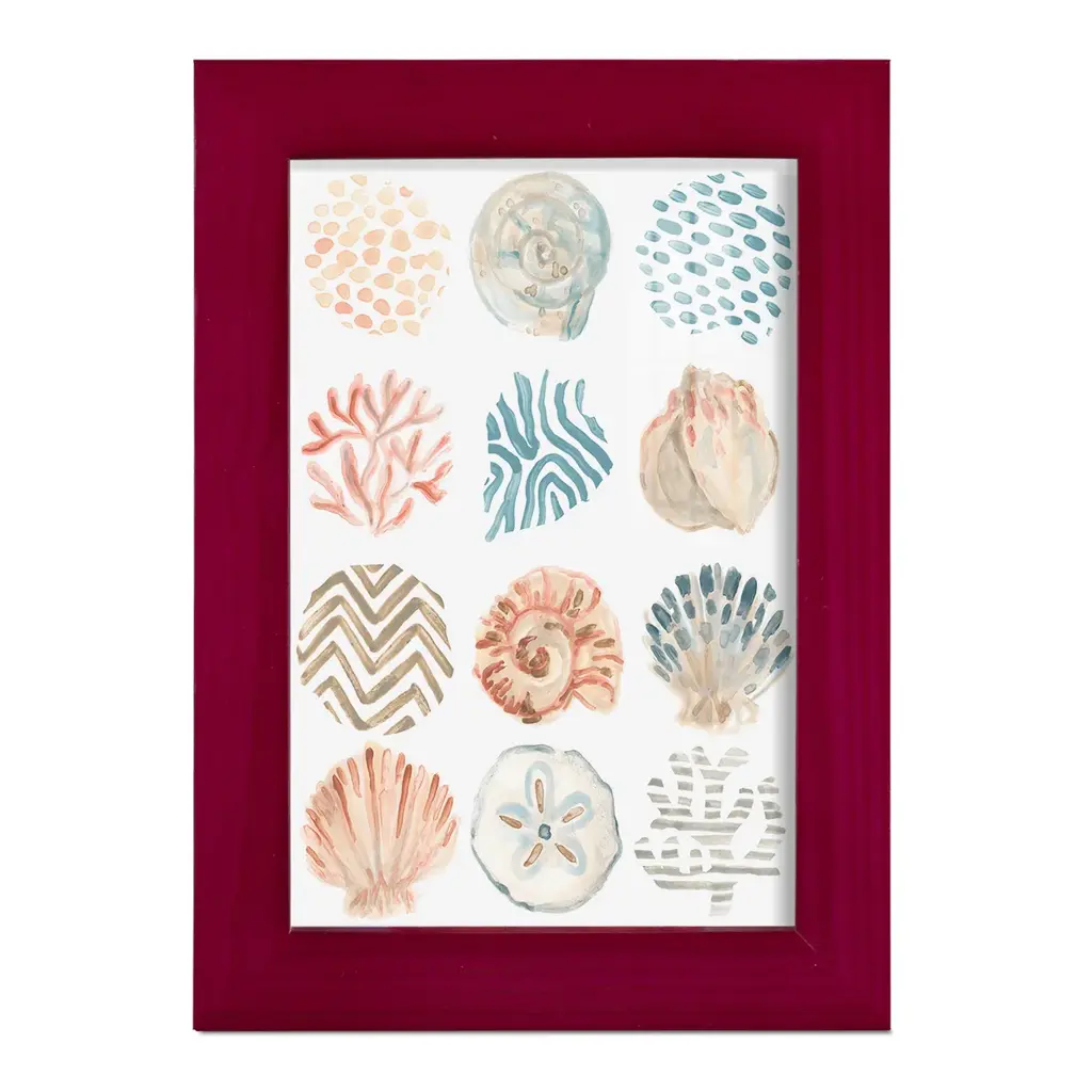 Ocean Patterns II -EZ SWITCH Framed Print w/glass-Cherry Red A delightful, framed print. Featuring a solid wood frame with real wood glass. This premium print is giclee quality. In addition, every frame features a removable back and table top stand. This allows you to change your art in the future or to just stand the art on a table for a new look. We are sure you'll enjoy our new series of EZ SWITCH Framed Art. Solid Wood Frame Real Glass Removable / Replaceable Art Built in Tabletop Stand Sizes range from 4x6 up to 12x15 - buy just one or pair them up as sets as you see fit.