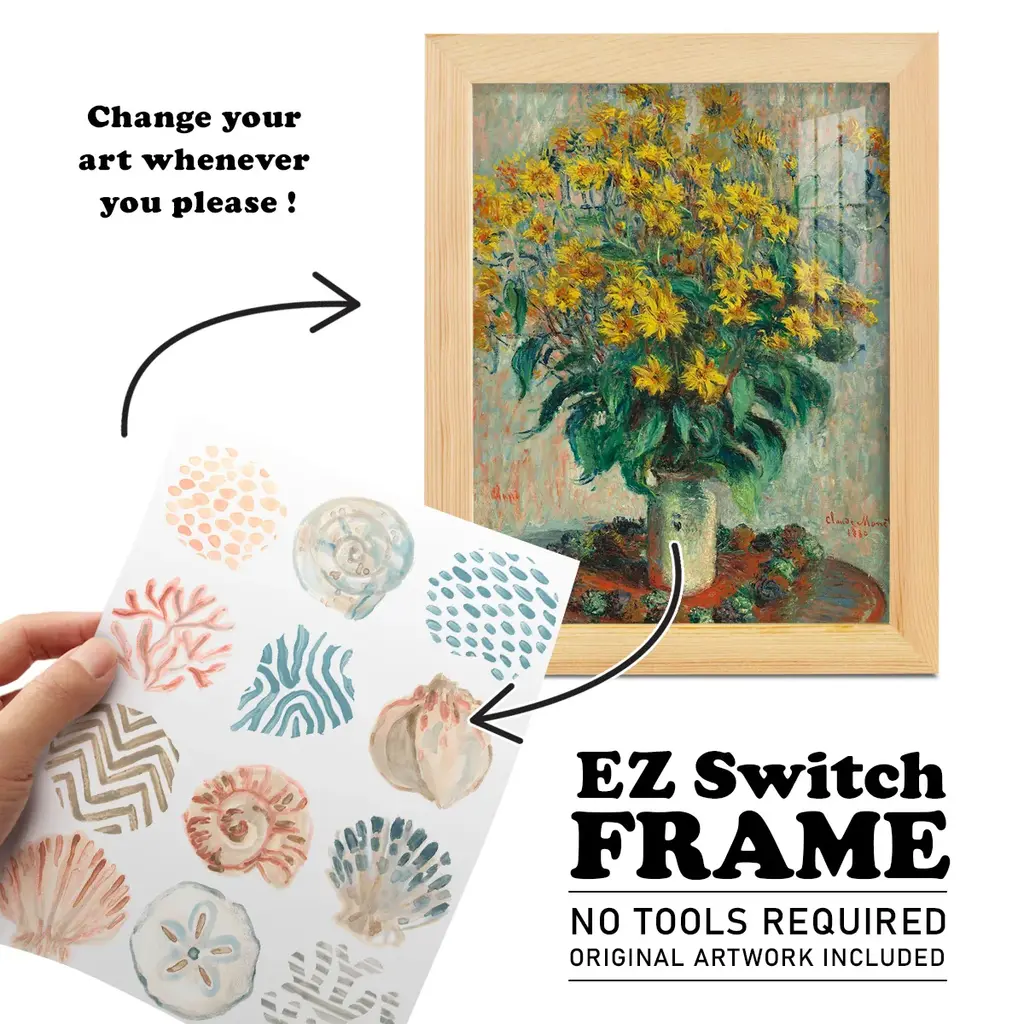 Ocean Patterns II -EZ SWITCH Framed Print w/glass-Cherry Red A delightful, framed print. Featuring a solid wood frame with real wood glass. This premium print is giclee quality. In addition, every frame features a removable back and table top stand. This allows you to change your art in the future or to just stand the art on a table for a new look. We are sure you'll enjoy our new series of EZ SWITCH Framed Art. Solid Wood Frame Real Glass Removable / Replaceable Art Built in Tabletop Stand Sizes range from 4x6 up to 12x15 - buy just one or pair them up as sets as you see fit.