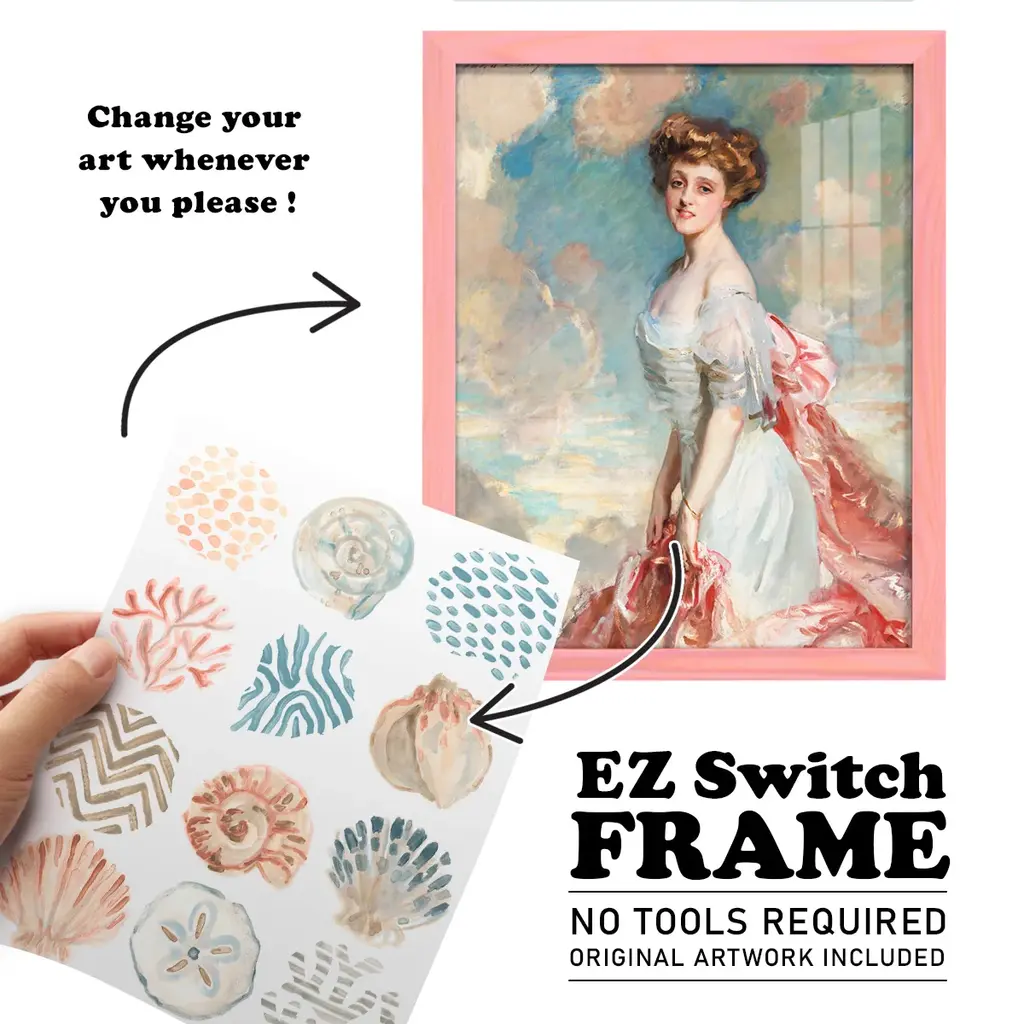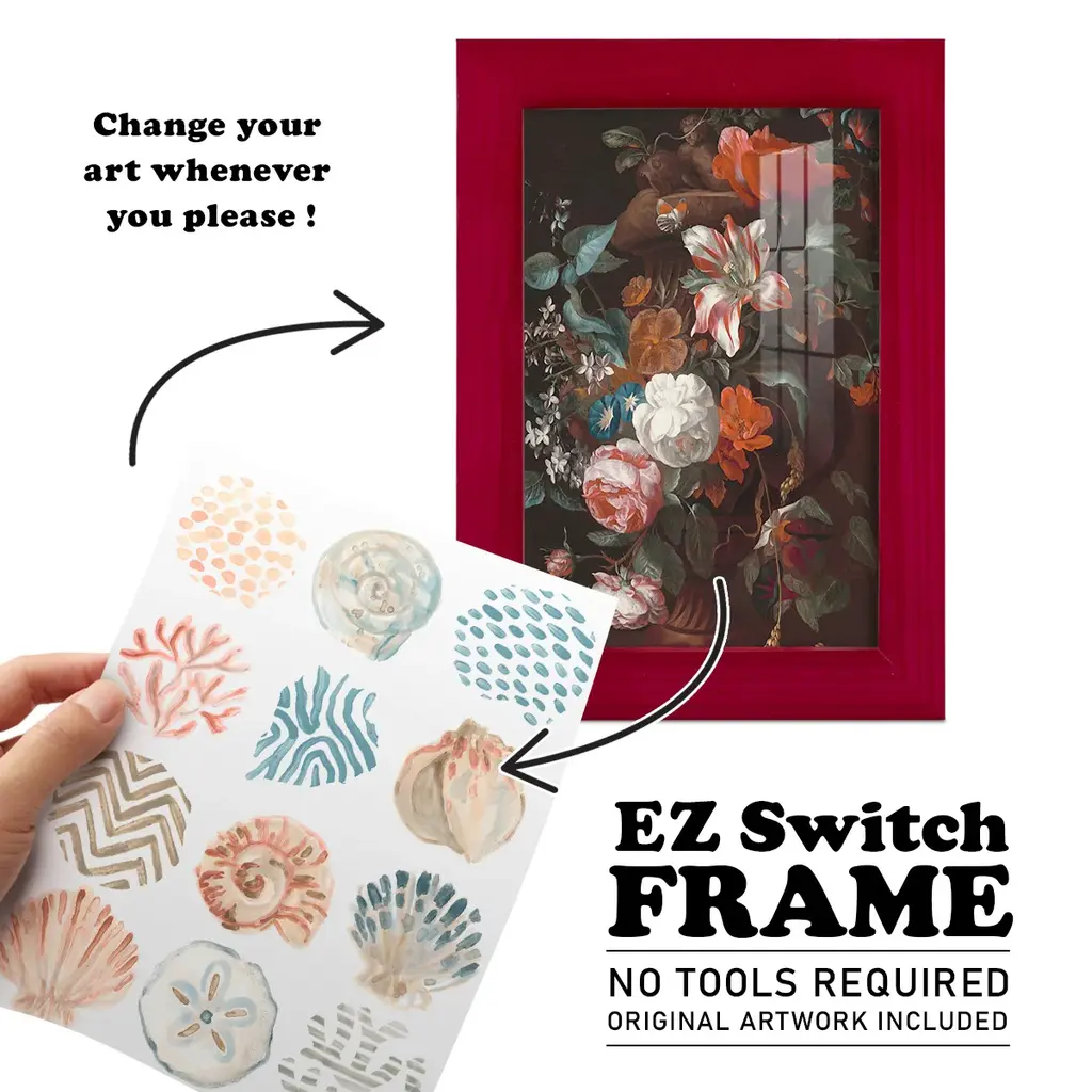 Ocean Patterns II -EZ SWITCH Framed Print w/glass-Cherry Red A delightful, framed print. Featuring a solid wood frame with real wood glass. This premium print is giclee quality. In addition, every frame features a removable back and table top stand. This allows you to change your art in the future or to just stand the art on a table for a new look. We are sure you'll enjoy our new series of EZ SWITCH Framed Art. Solid Wood Frame Real Glass Removable / Replaceable Art Built in Tabletop Stand Sizes range from 4x6 up to 12x15 - buy just one or pair them up as sets as you see fit.