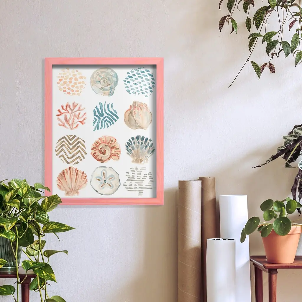 Ocean Patterns II -EZ SWITCH Framed Print w/glass-Cherry Red A delightful, framed print. Featuring a solid wood frame with real wood glass. This premium print is giclee quality. In addition, every frame features a removable back and table top stand. This allows you to change your art in the future or to just stand the art on a table for a new look. We are sure you'll enjoy our new series of EZ SWITCH Framed Art. Solid Wood Frame Real Glass Removable / Replaceable Art Built in Tabletop Stand Sizes range from 4x6 up to 12x15 - buy just one or pair them up as sets as you see fit.