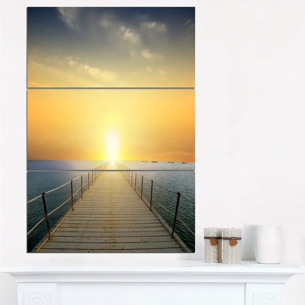 "Ocean Sunset With Pier" Photo Metal Wall Art, 3 Panels, 28"x36"