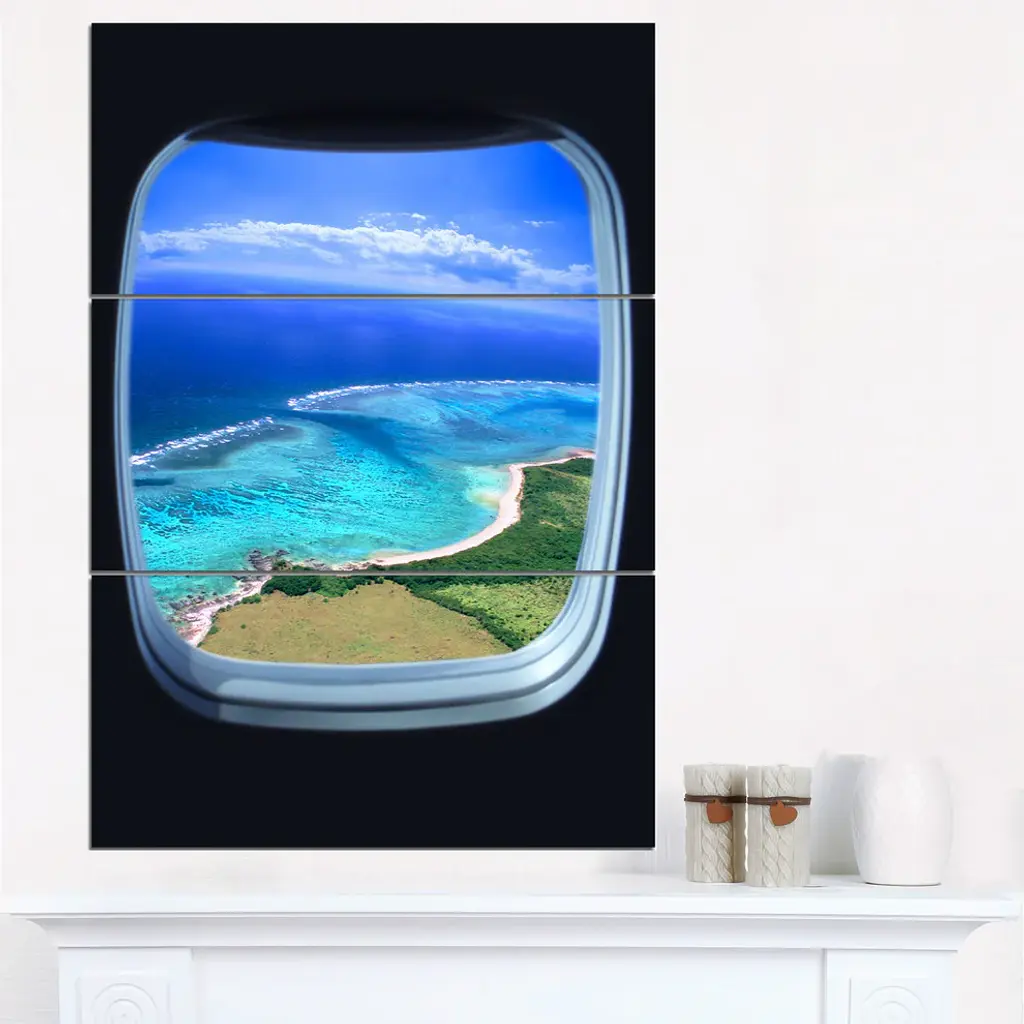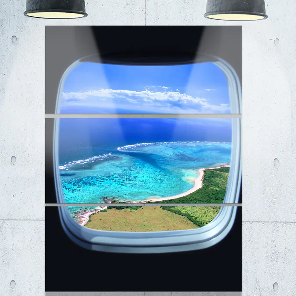 "Ocean View From Window" Photo Metal Wall Art, 3 Panels, 28"x36"