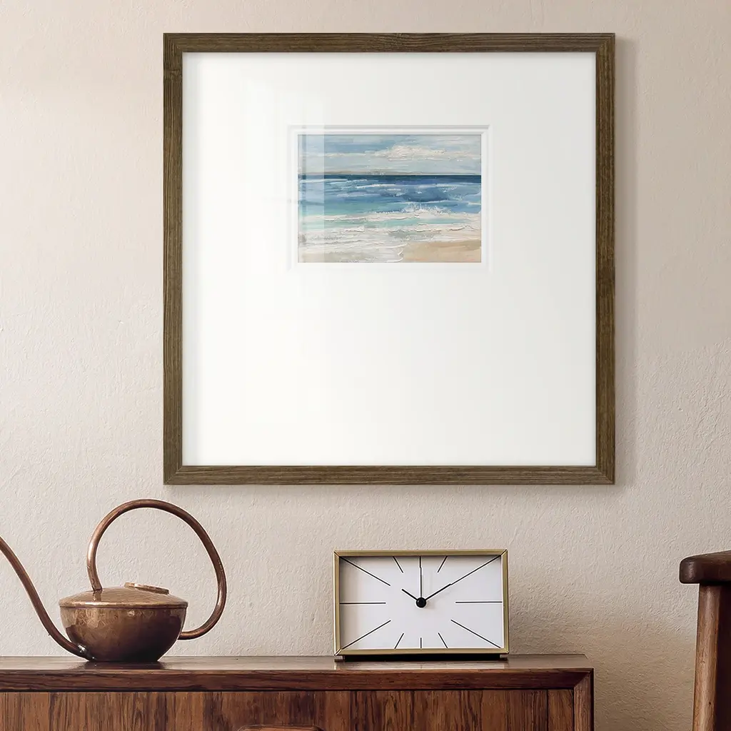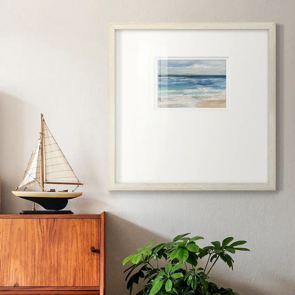 Ocean Waves IPremium Framed Print A framed cold pressed paper print featuring superior double matting and quality frame. 2 SIZES AVAILABLE 16''X16''' - Overall Size 20''X20''' - Overall Size Each piece is made to order. Each piece comes with hanging hardware. Made in the USA Ready to Hang Giclee Paper Print Plexiglass Beveled Matt Board Double Matte Board