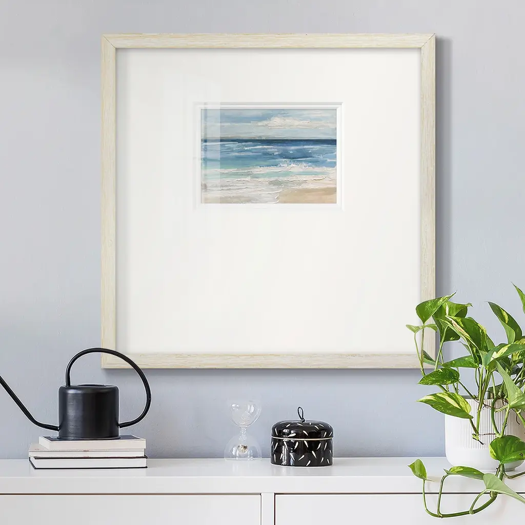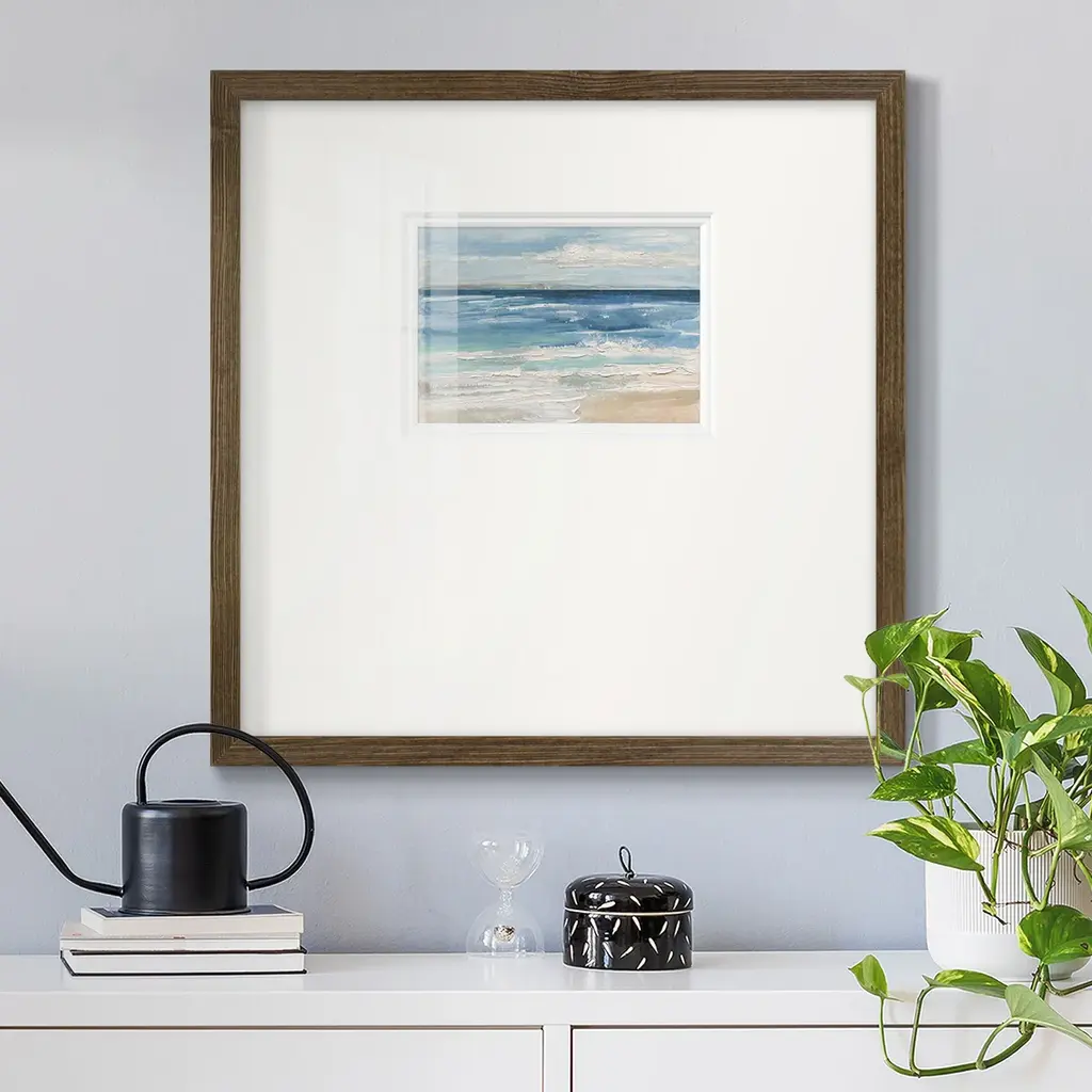 Ocean Waves IPremium Framed Print A framed cold pressed paper print featuring superior double matting and quality frame. 2 SIZES AVAILABLE 16''X16''' - Overall Size 20''X20''' - Overall Size Each piece is made to order. Each piece comes with hanging hardware. Made in the USA Ready to Hang Giclee Paper Print Plexiglass Beveled Matt Board Double Matte Board