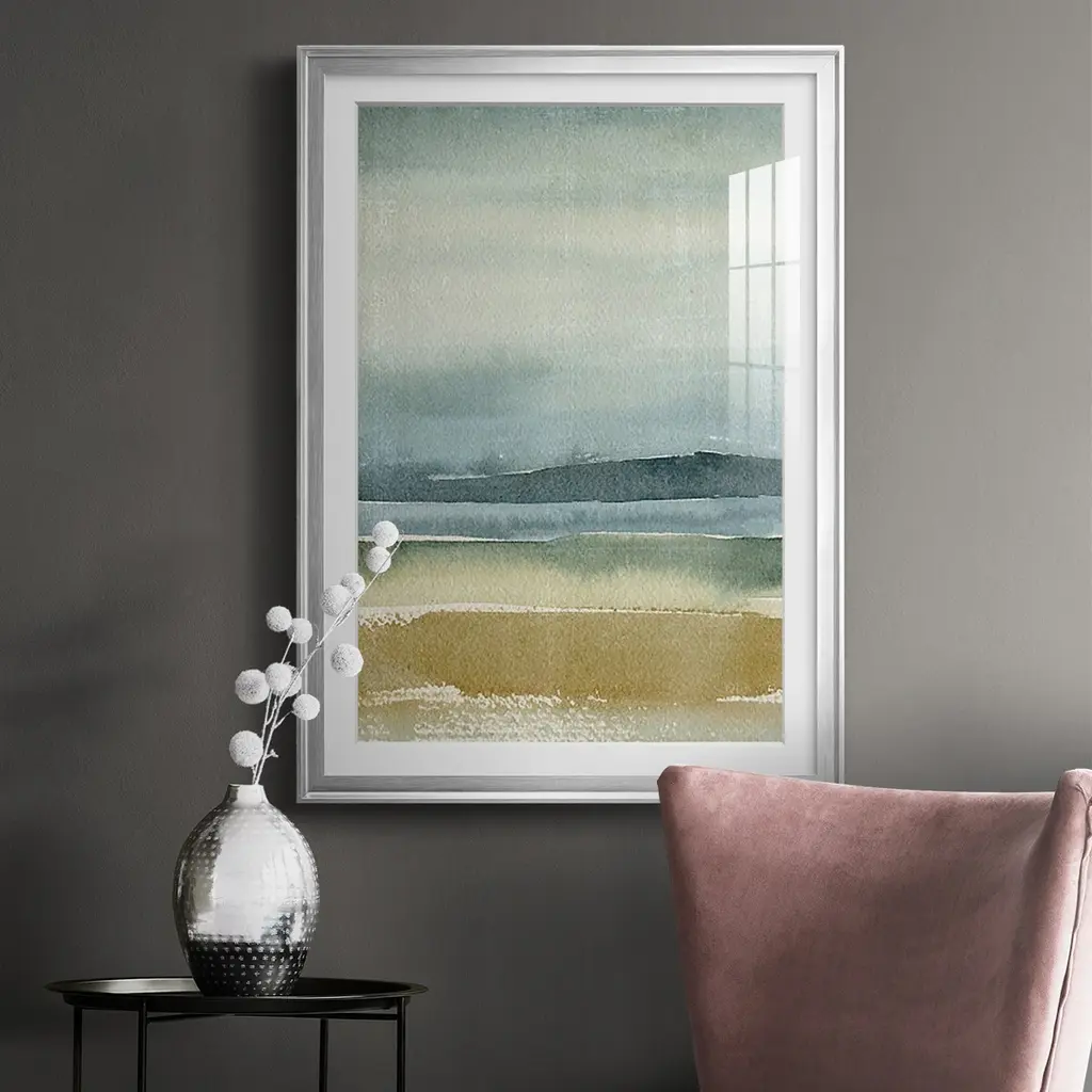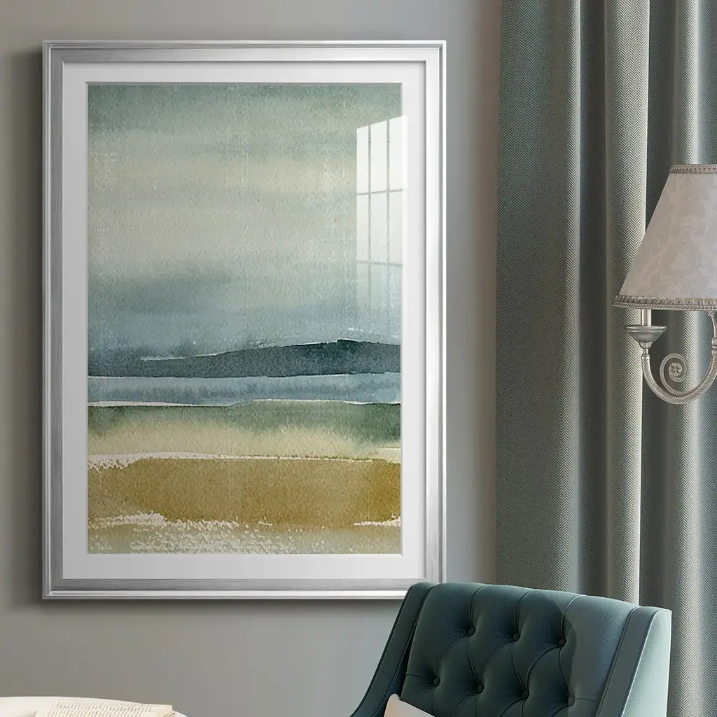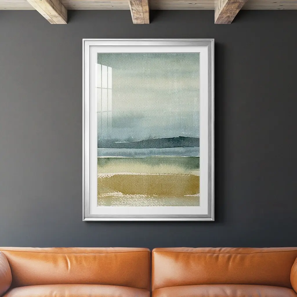 Ochre Outlook I Premium Framed Print - Ready to Hang A Premium Framed Print created to last. Framed in distressed wood and available in an array of sizes and colors Featuring a beveled a solid wood stretcher bar, each piece comes ready to hand 4 SIZES AVAILABLE 30.5''X42.5'' - Overall Size 26.5'X36.5'' - Overall Size 22.5''x30.5'' - Overall Size 18.5''x24.5'' - Overall Size Each piece is made to order. Each piece comes with hanging hardware. Made in the USA Ready to Hang Giclee Paper Print Acrylic Glass Beveled Matt Board