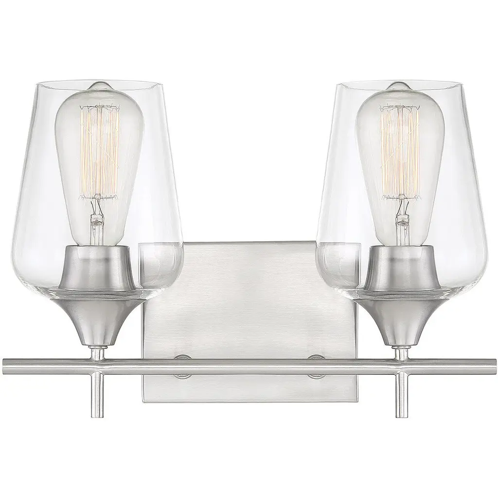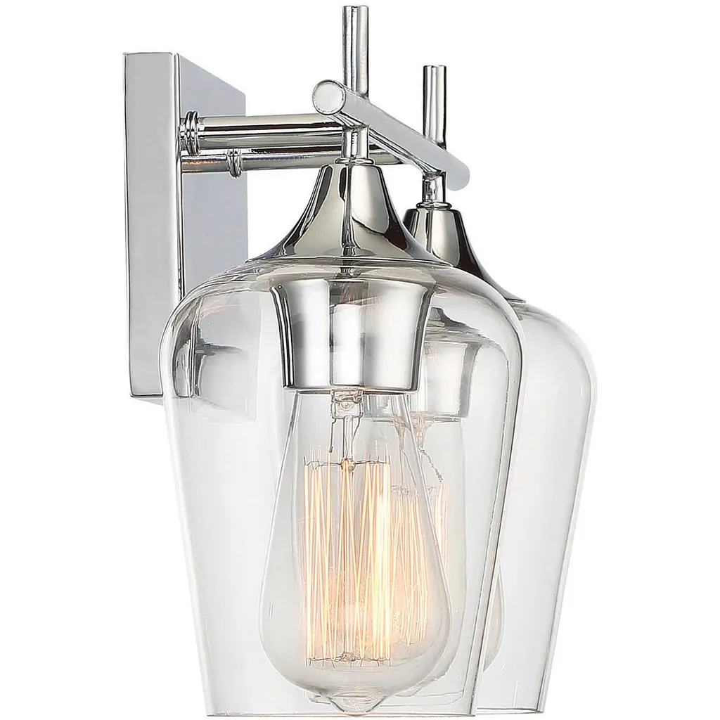 The Octave 2-light bath bar from Savoy House has understated elegance. It features large curved shades of clear glass, minimal detailing and a polished chrome finish. It may be mounted as either uplight or downlight. Bath bar lights are a classic choice for illuminating vanity mirrors in bathrooms big and small. Because the bulbs are exposed, try using stylized bulbs for a different look The polished chrome finish can be paired with chrome hardware or mixed with hardware in other fixtures. Try the Octave with glam, transitional or contemporary style rooms for a chic look. When you choose a Savoy House lighting fixture, you can be certain you've selected a piece that will withstand the test of time.