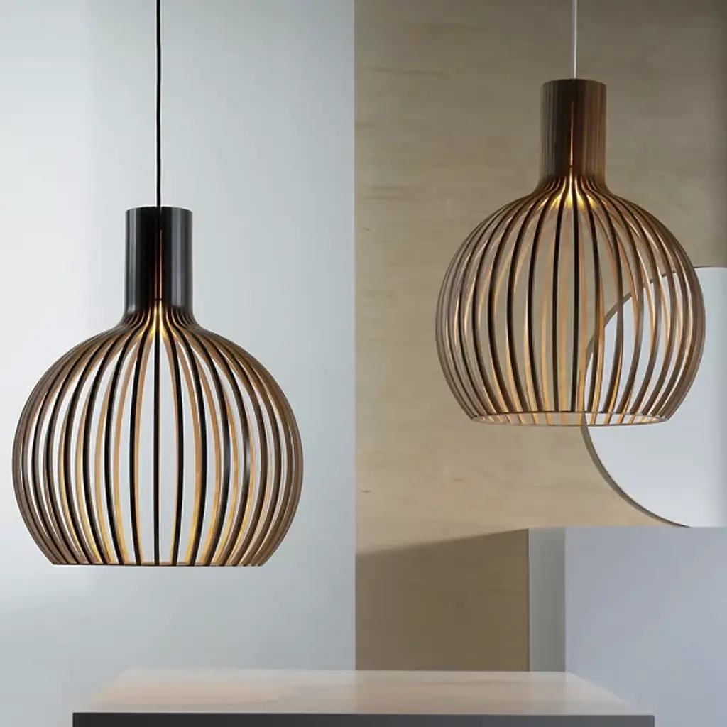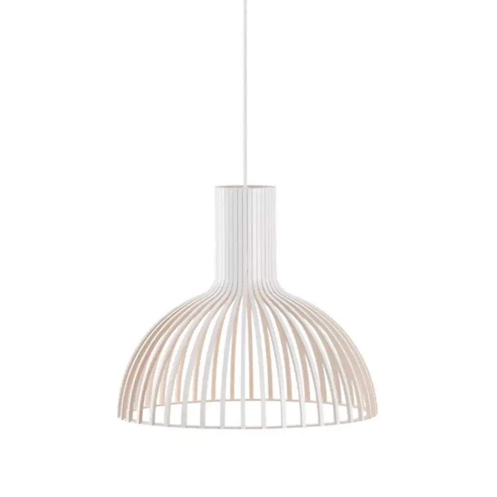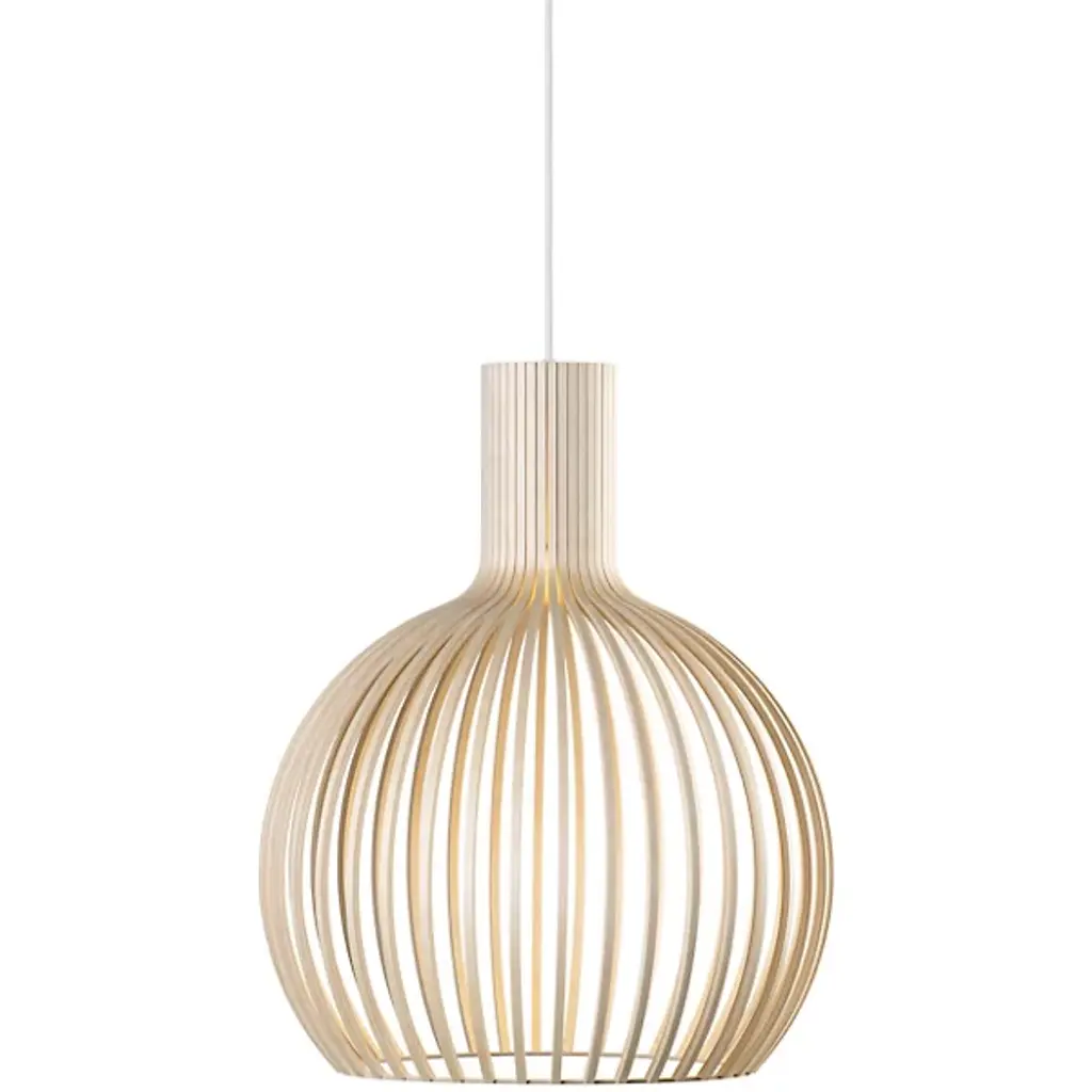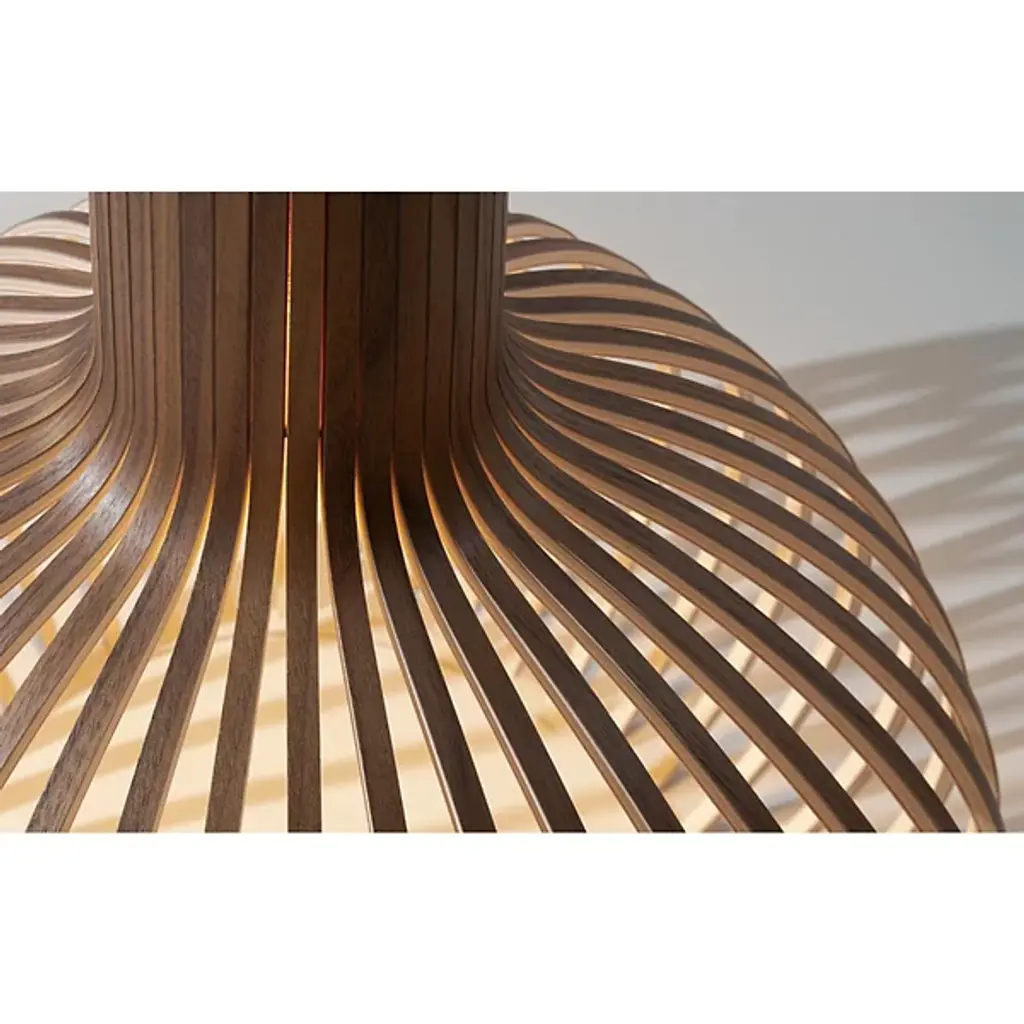 A handcrafted source of intrigue. Create a sense of ease in your room with the airy Octo 4251 Pendant from Seco Design floating above. It’s an eye-pleaser, following the minimalist character of modern Scandinavian design. Creator Seppo Koho stresses craftmanship by sketching out and prototyping the piece by hand using wood. Finnish artisans don’t skip a beat as they refine Koho’s prototypes into handcrafted floating forms made from birch wood. The elegant form seduces as its fine birch wood contours curve out and separate to create an airy shade. The bulb concealed on top gives the piece a sculptural aesthetic. The wood structure mesmerizes as stripes of fine light and shadow dance in the air. An aura of warm light accompanies a relaxing down glow with the flip of the switch.