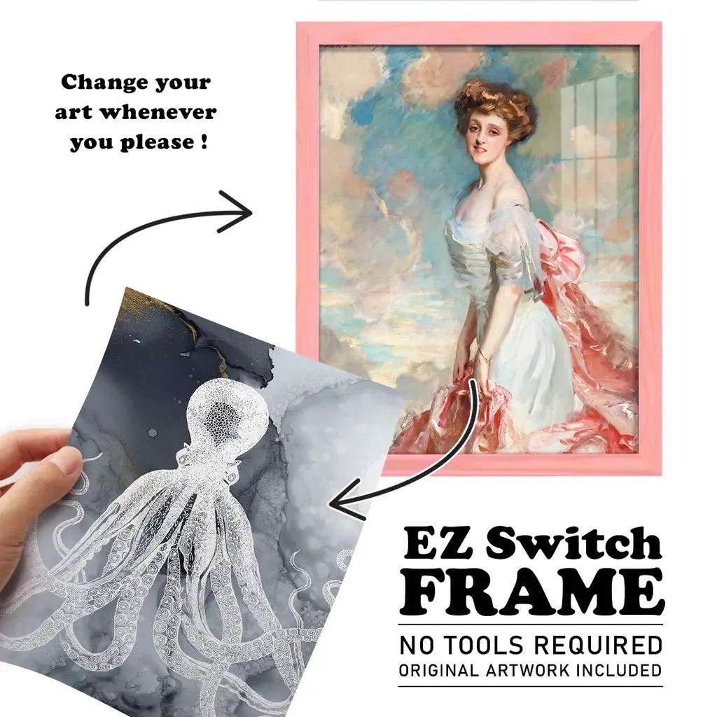 Octopus Ink I -EZ SWITCH Framed Print w/glass-Cherry Red A delightful, framed print. Featuring a solid wood frame with real wood glass. This premium print is giclee quality. In addition, every frame features a removable back and table top stand. This allows you to change your art in the future or to just stand the art on a table for a new look. We are sure you'll enjoy our new series of EZ SWITCH Framed Art. Solid Wood Frame Real Glass Removable / Replaceable Art Built in Tabletop Stand Sizes range from 4x6 up to 12x15 - buy just one or pair them up as sets as you see fit.