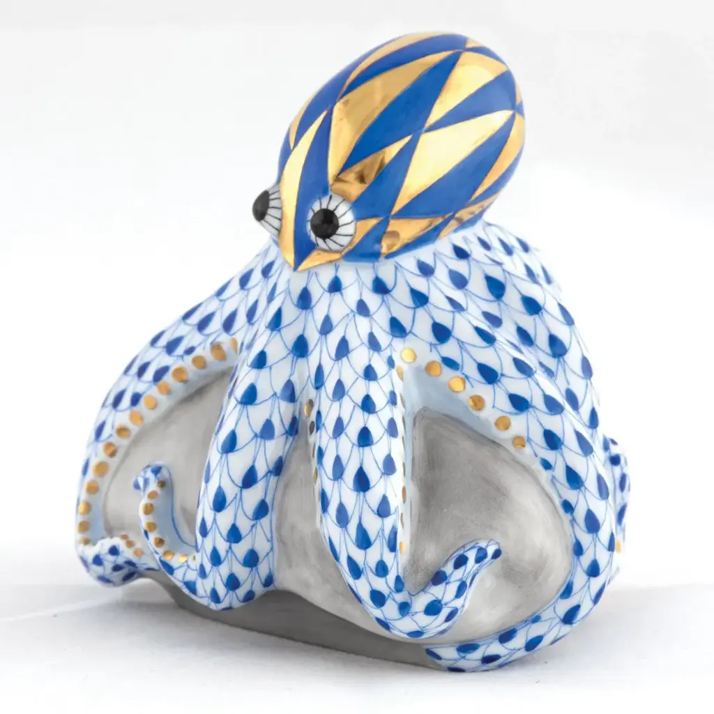 Octopus On Rock Sapphire 3.25 In L X 2.75 In W X 3.25 In H
