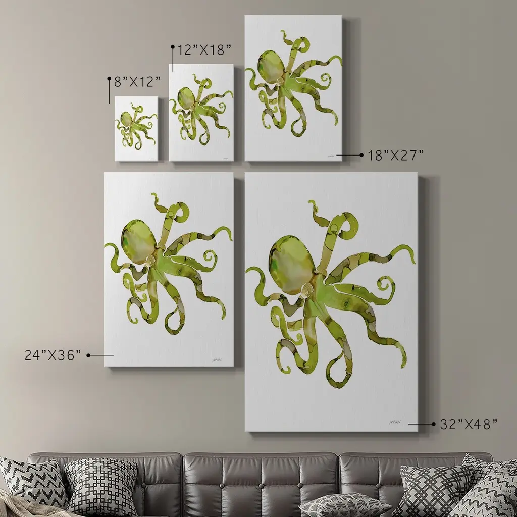 Octopus Premium Gallery Wrapped Canvas - Ready to Hang A premium hand stretched gallery wrapped canvas print created to last. Featuring a beveled a solid wood stretcher bar, each piece comes ready to hand 6 SIZES AVAILABLE 8''X12'' - Overall Size 12''X18'' - Overall Size 18''X27'' - Overall Size 24''x36'' - Overall Size 32''x48'' - Overall Size 40''x60'' - Overall Size Each piece is made to order. Built to Last Each piece comes ready to hang Solid wood stretcher Fade and Water resistant Made domestically