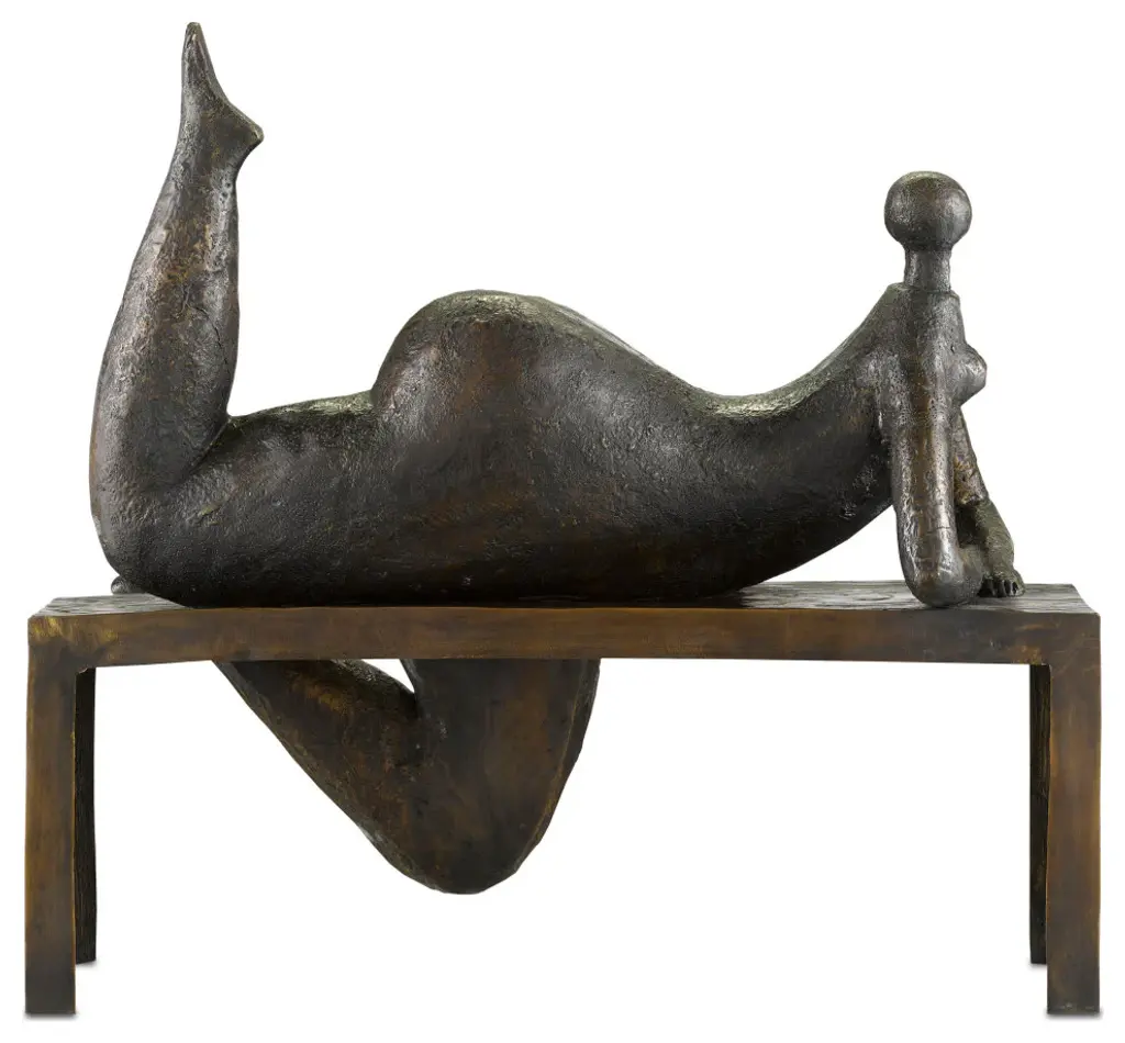 Our Odalisque Bronze sculpture is made from a lost-wax technique when boiling bronze is poured into a mold covering an original wax sculpture that melts away. Once set, there is a very long process of refining the bronze to give it patina. This is among our bronze art pieces created by an unknow artist. We love her femininity.