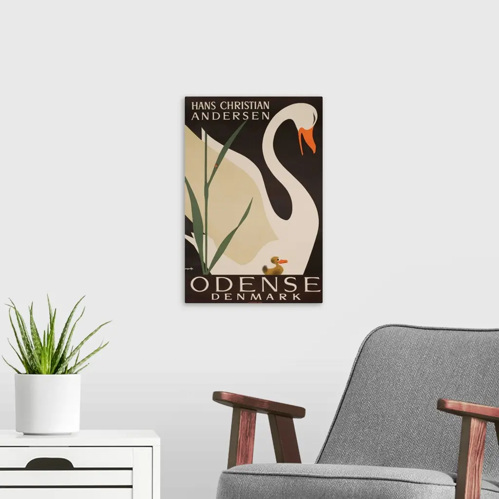 Odense Denmark Travel Poster, Hans Christian Andersen Ugly Duckling