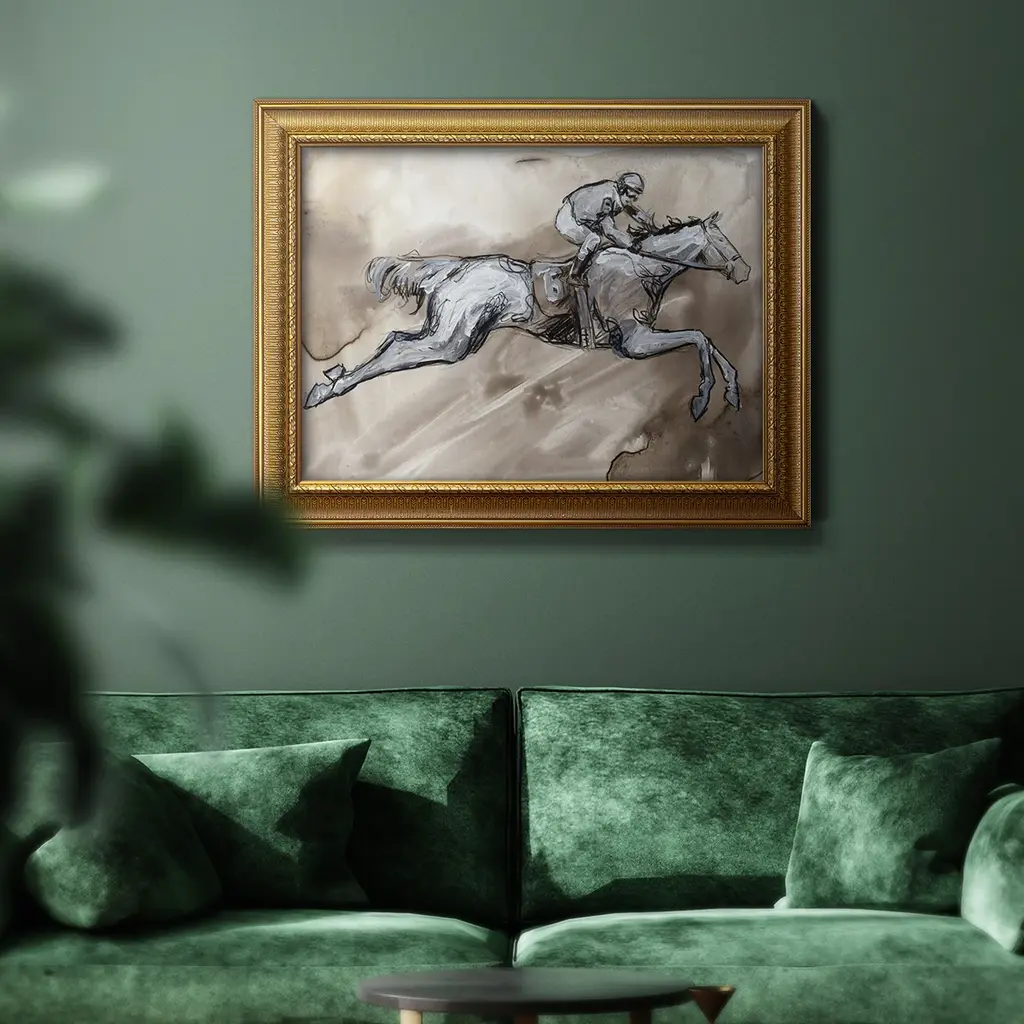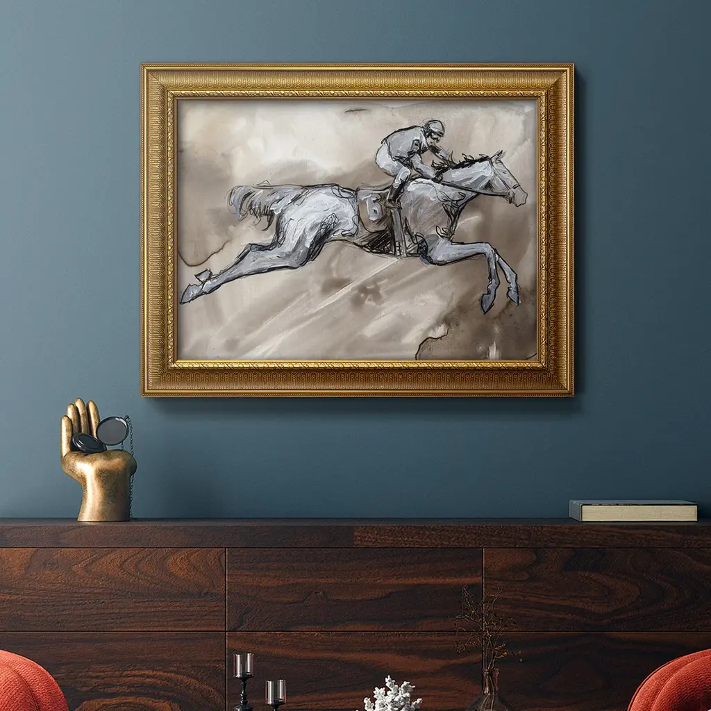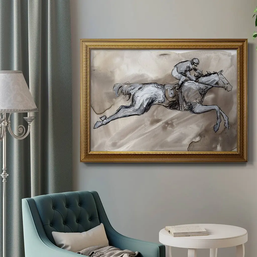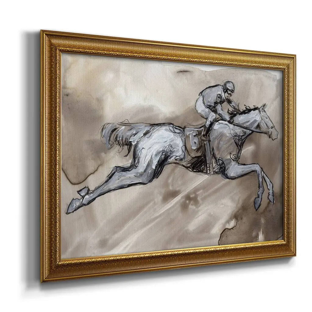 Off To The Races Ii Premium Framed Canvas- Ready To Hang - 18x27 - Gold
